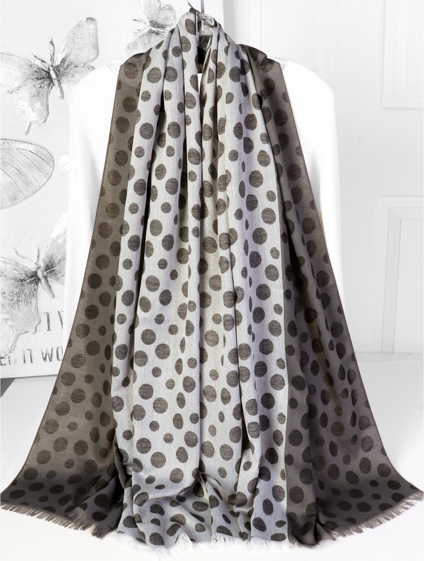 Modèle Two-Tone Polka Dot Print Fashion Shawl Scarf W/ Cut Tassels