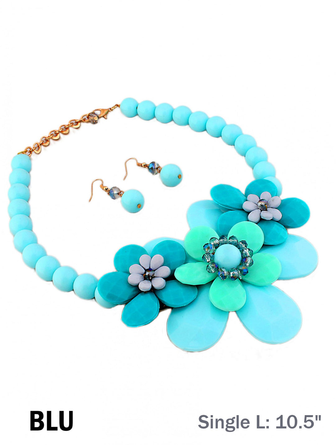 Collier plastron floral perlé avec boucles d’oreilles assorties