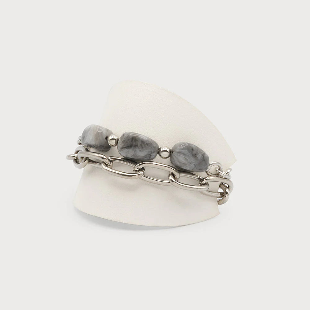 Bracelet pierres naturelles et maillons martelés