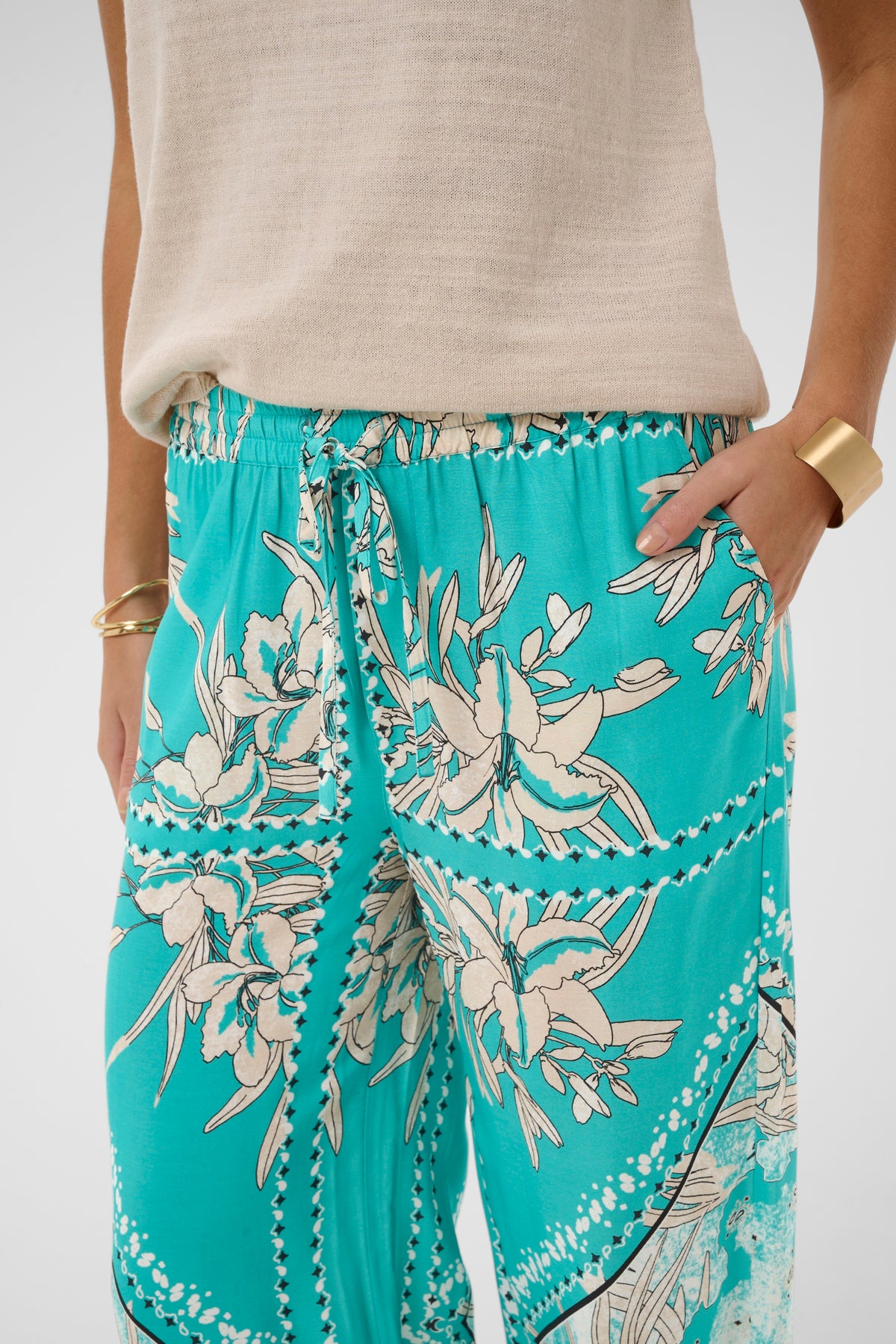 Ce pantalon est un ode à la simplicité qui réconforte, du goût qui ne se prend pas au sérieux. Sa bande élastique à la taille n’est pas qu’un détail pratique — c’est une promesse de douceur, un secret de confort glissé dans les plis d’un vêtement qui épouse le corps sans jamais le contraindre. Il se pose là, naturellement, comme une respiration, comme un soupir de bien-être.