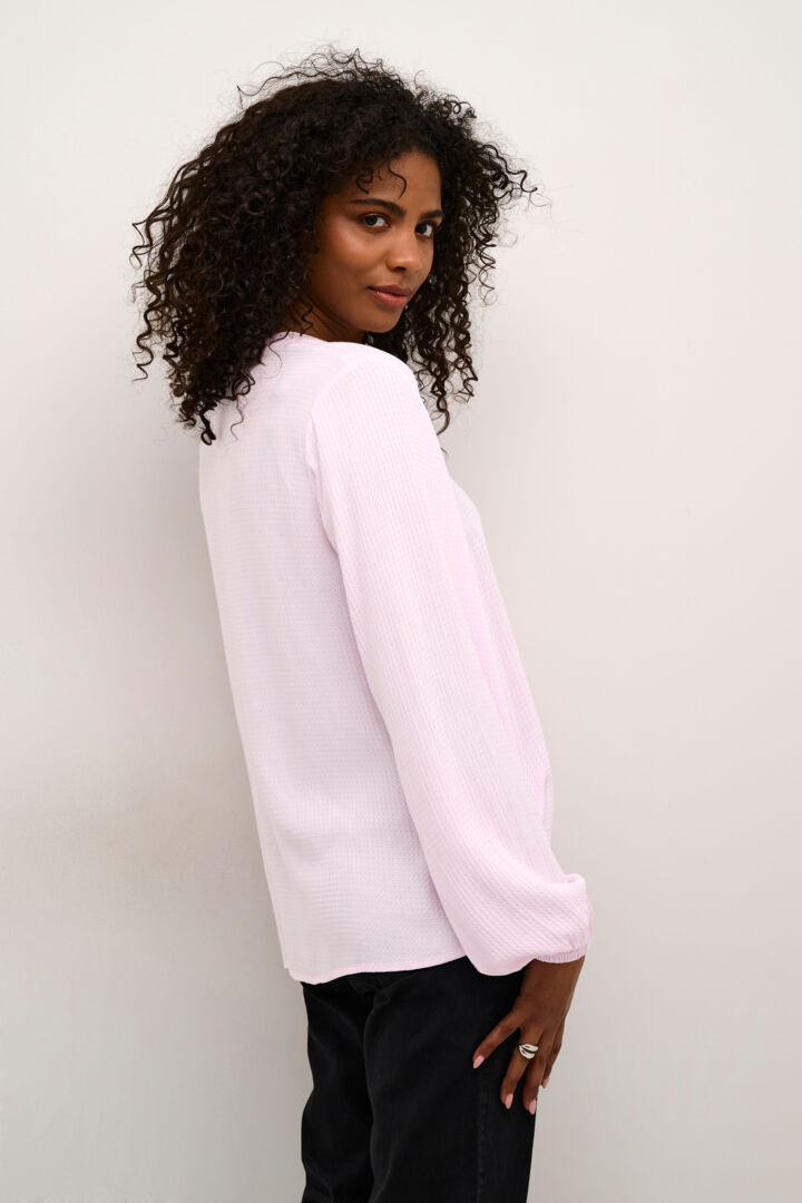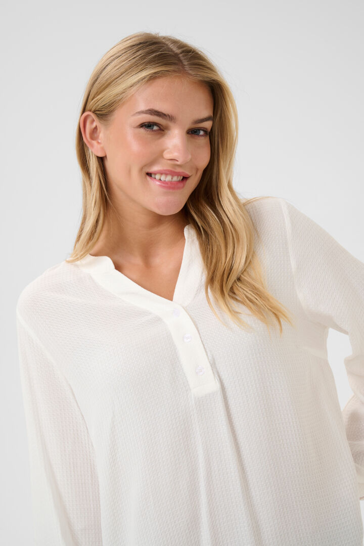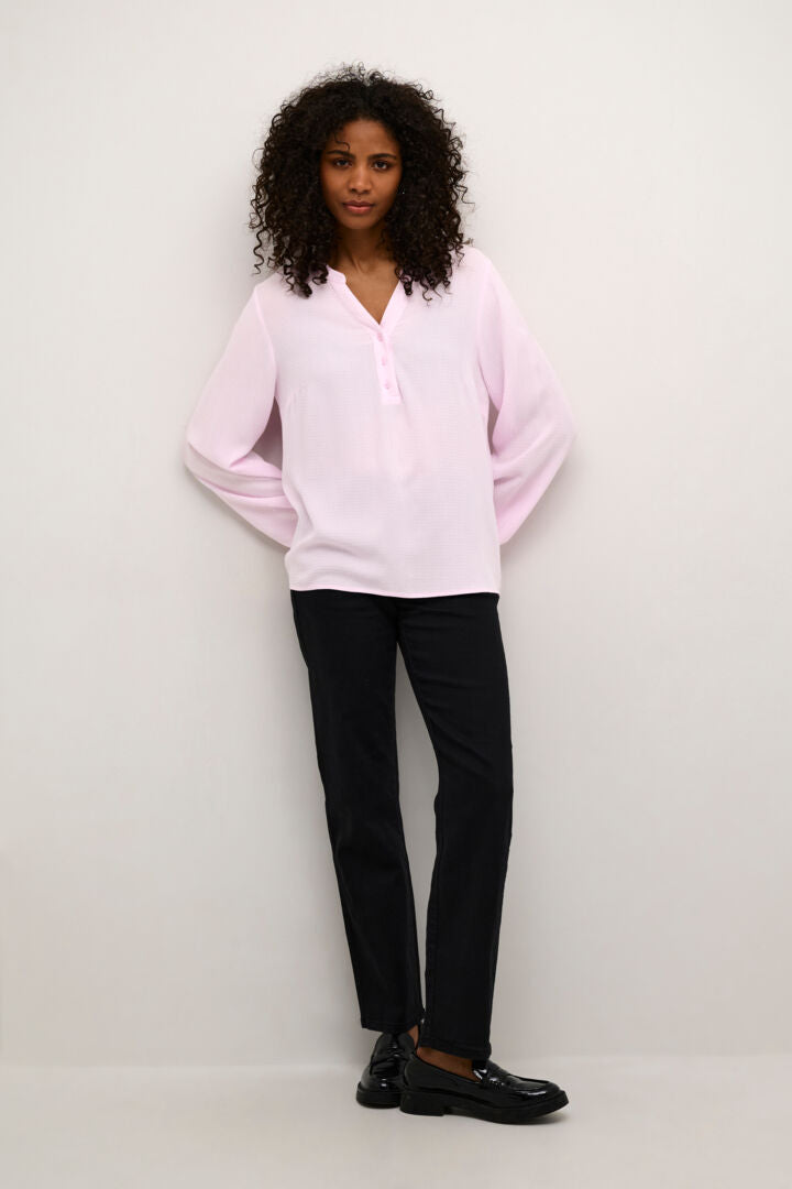 La blouse trois boutons, c’est la simplicité réinventée, une pièce qui allie minimalisme et détails subtils. Son col délicatement dessiné s’ouvre sur une patte de boutonnage ornée de trois boutons soigneusement choisis, petits éclats de brillance qui apportent une touche discrète de raffinement.