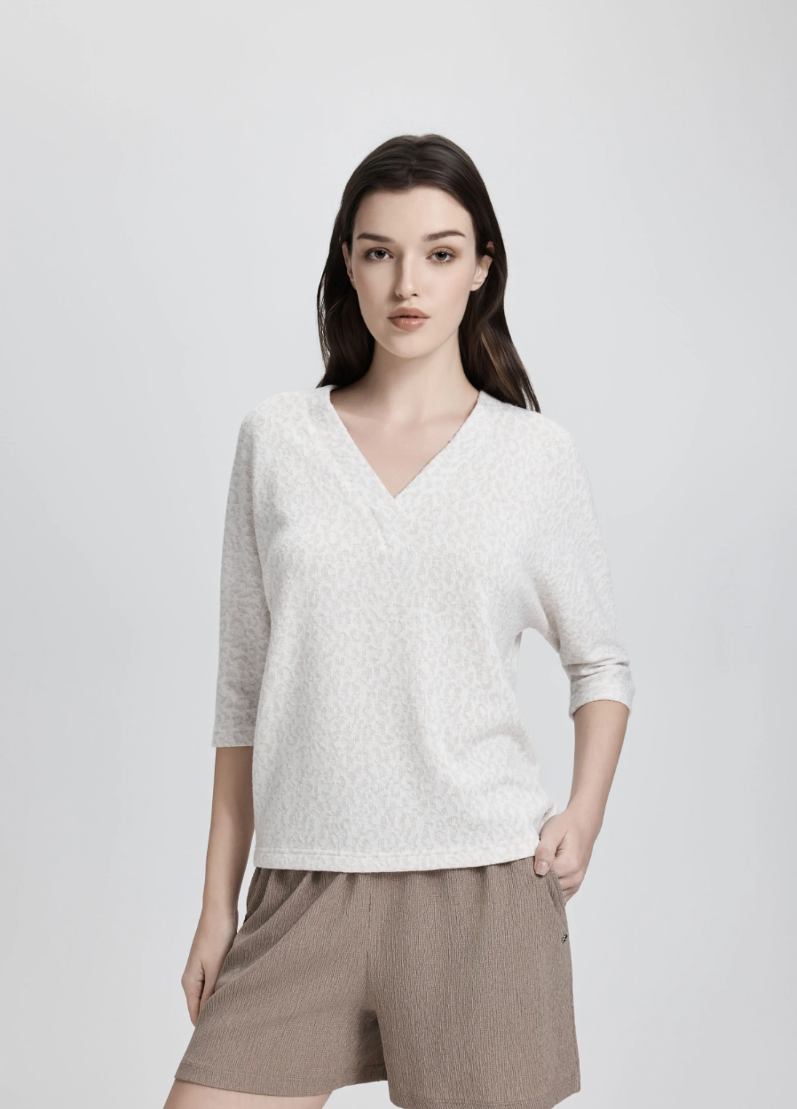 Haut à manches mi-longues Eurasaari – Texture jacquard et col en V