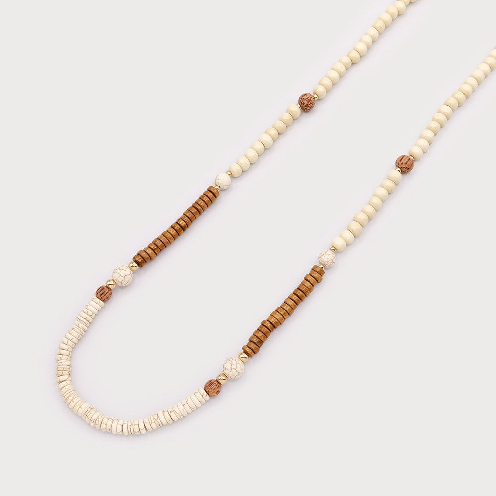 Sautoir en perles de bois et gemmes - Bijou aux matières minérales
