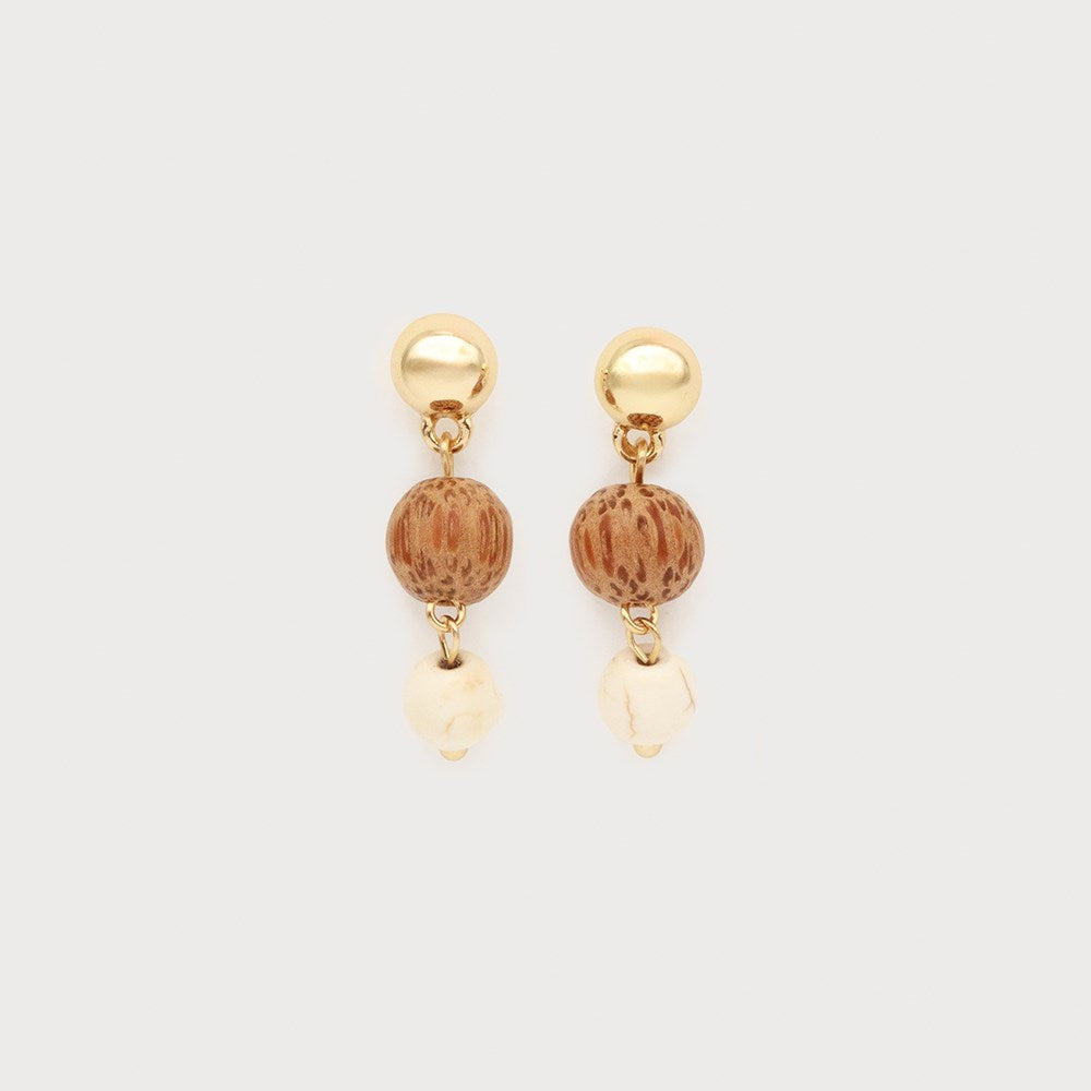 Boucles d'oreilles sur tige en bois et pierre - Bijou aux billes naturelles
