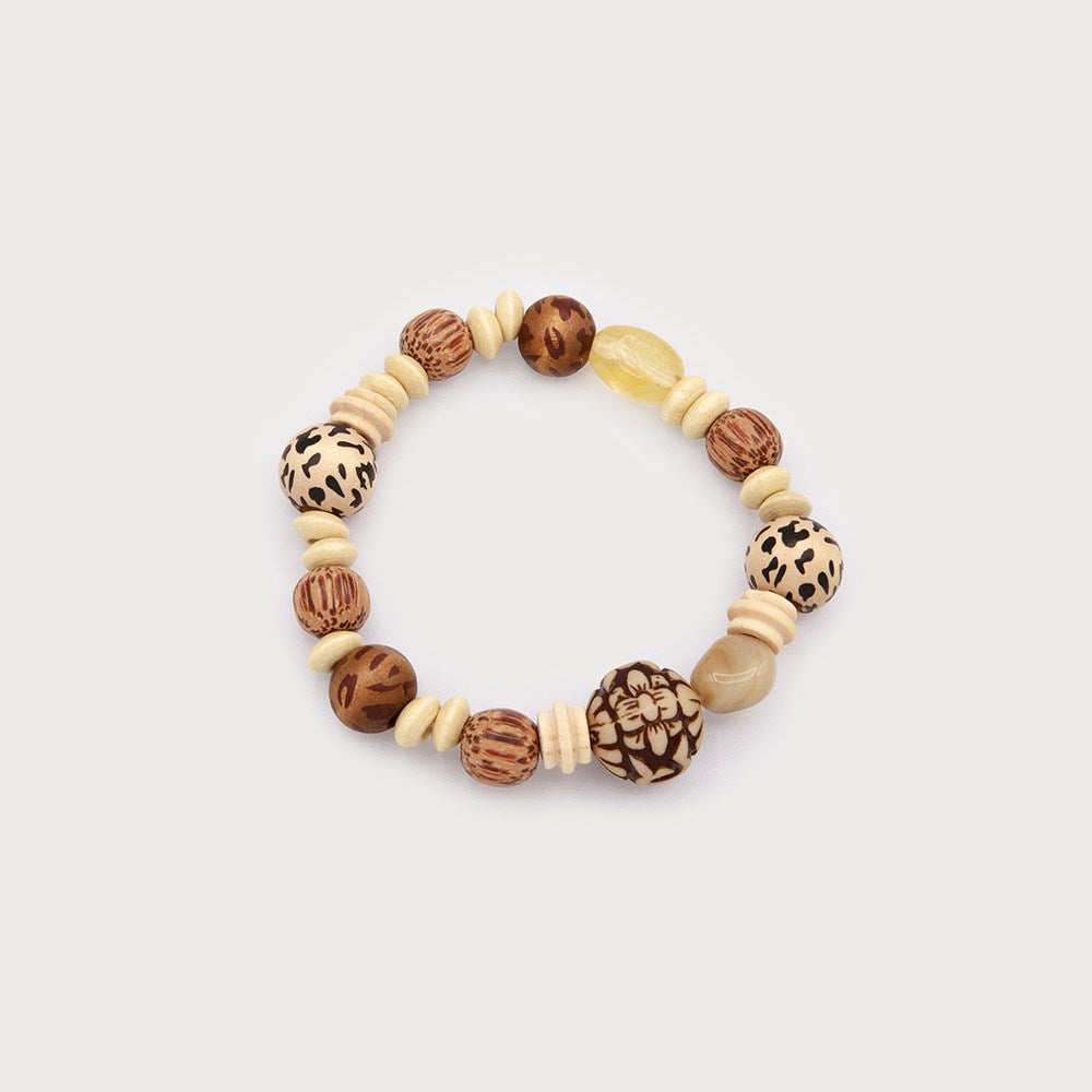 Bracelet à billes de bois et raphia - Inspiration naturelle