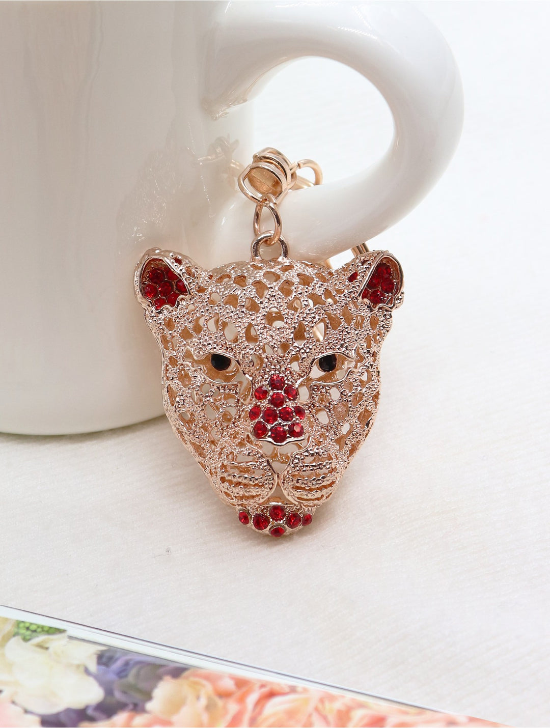 Porte-clés animal orné de strass – Motif lion