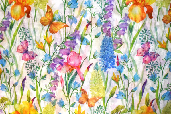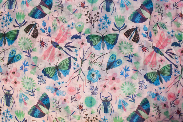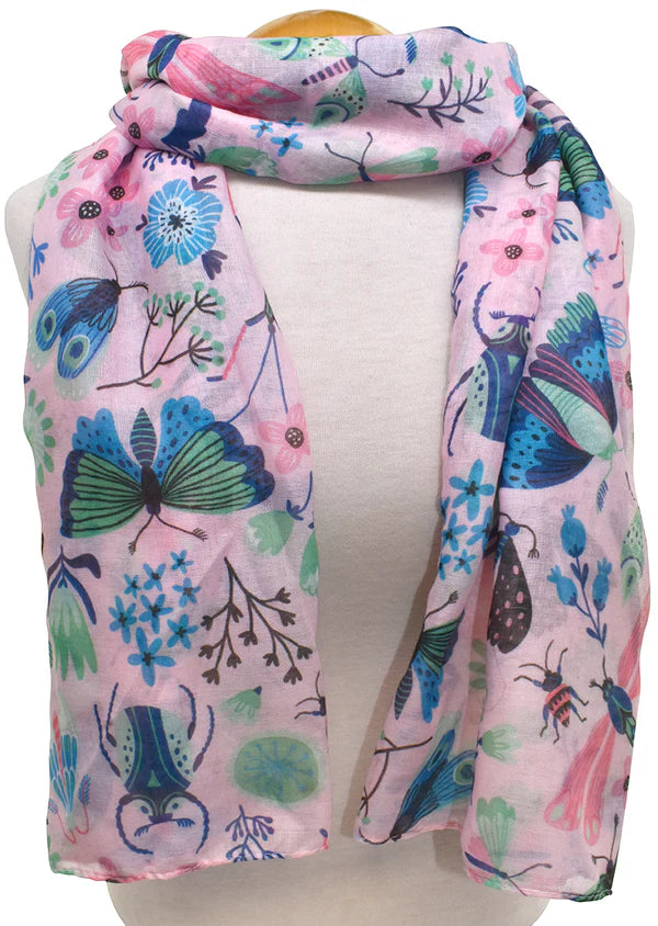 Foulard imprimé fleurs et insectes – format rectangulaire