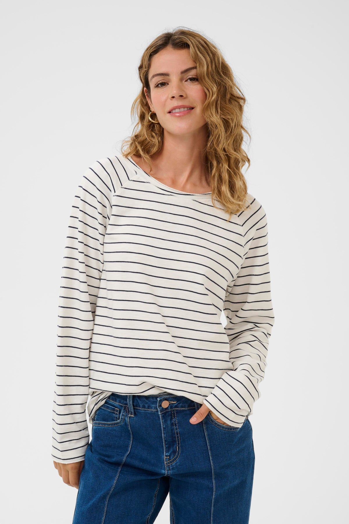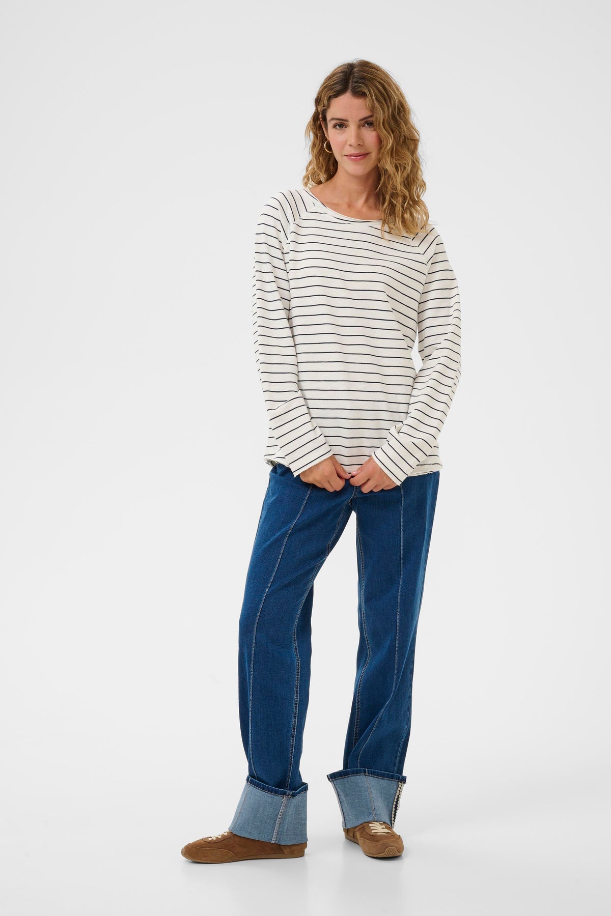 Ce chandail à manches longues est un essentiel facile à porter, pensé pour le quotidien. Ses rayures marine apportent une touche discrète, tandis que sa coupe ample assure un confort naturel. Une pièce polyvalente qui traverse les saisons avec style.