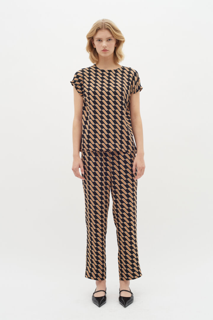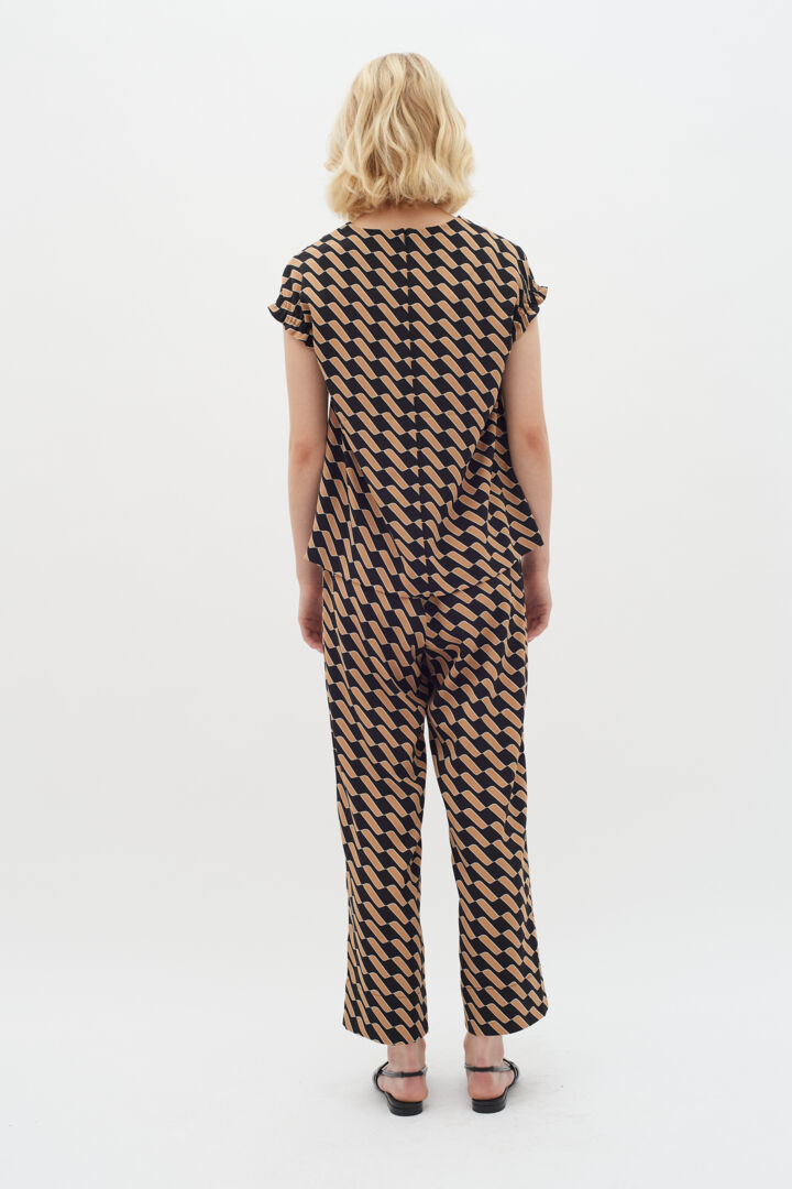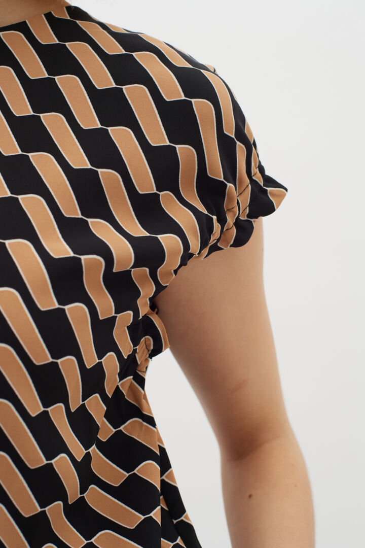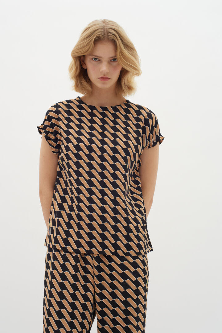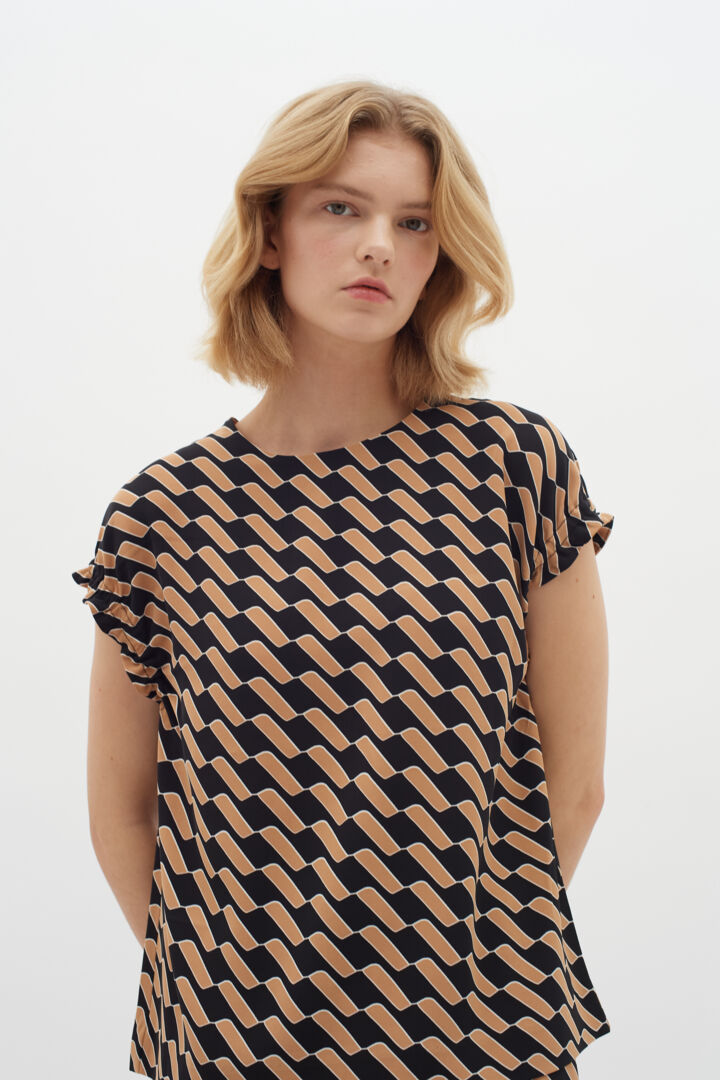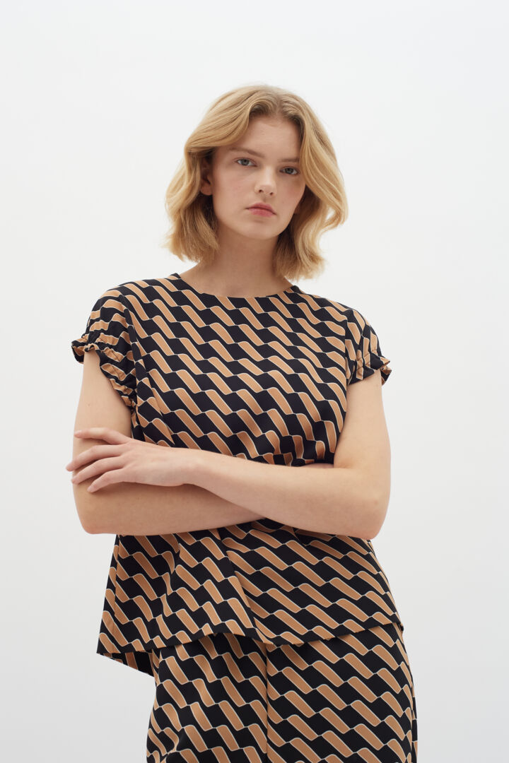 Les motifs rectangulaires sur cette blouse apportent une dimension visuelle intéressante et une esthétique moderne à l'ensemble. Alignés avec précision et harmonie, ces motifs se distingue des rayures plus classique. Les motifs à carreaux sont polyvalents et intemporels. Ils peuvent être adaptés à une variété de styles.