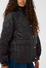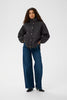 Chaleureuse et stylée, cette veste matelassée noire revisite le style utilitaire avec une touche urbaine. Sa coupe légèrement oversize et son col montant apportent confort et protection contre le froid, tandis que les surpiqûres en losanges ajoutent du relief à sa silhouette. Les boutons pression dorés contrastent subtilement avec le tissu noir pour une finition moderne et élégante. À superposer sur un pull en maille ou un sweat pour un look casual chic par temps frais.
