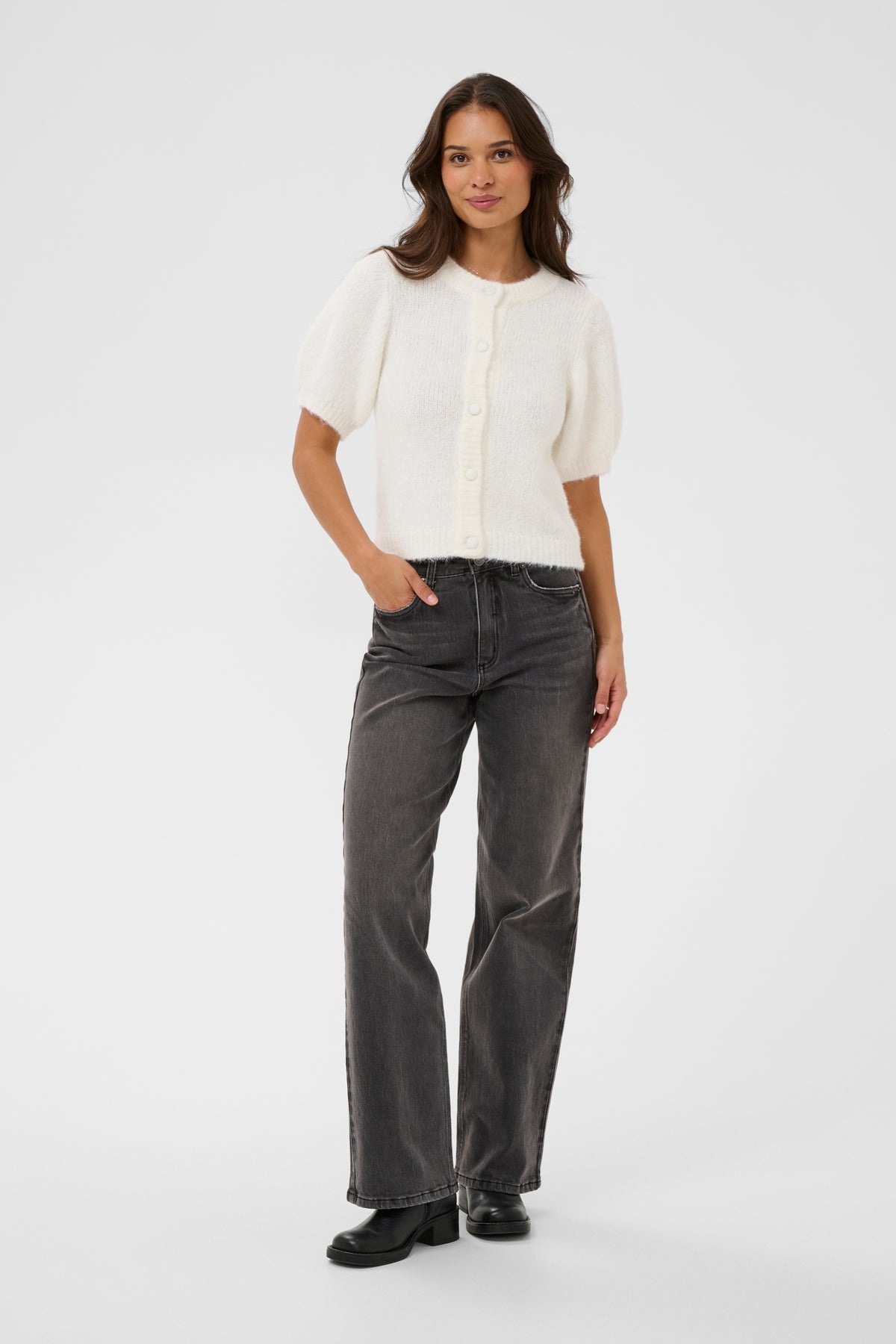 Ce cardigan tricoté séduit par sa douceur enveloppante et son allure délicatement féminine. Sa texture légèrement duveteuse apporte une touche chaleureuse tout en conservant une silhouette soignée. Porté ouvert ou boutonné, il complète aussi bien une tenue décontractée qu’un look plus raffiné. Une pièce facile à aimer, pensée pour traverser les saisons avec style.