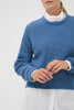 Ce pull présente une silhouette droite et légèrement carrée avec une texture côtelée discrète. Son encolure ronde, ses manches longues et sa longueur raccourcie lui donnent un style moderne et polyvalent. La finition propre et sans coutures apparentes apporte une touche soignée et minimaliste.