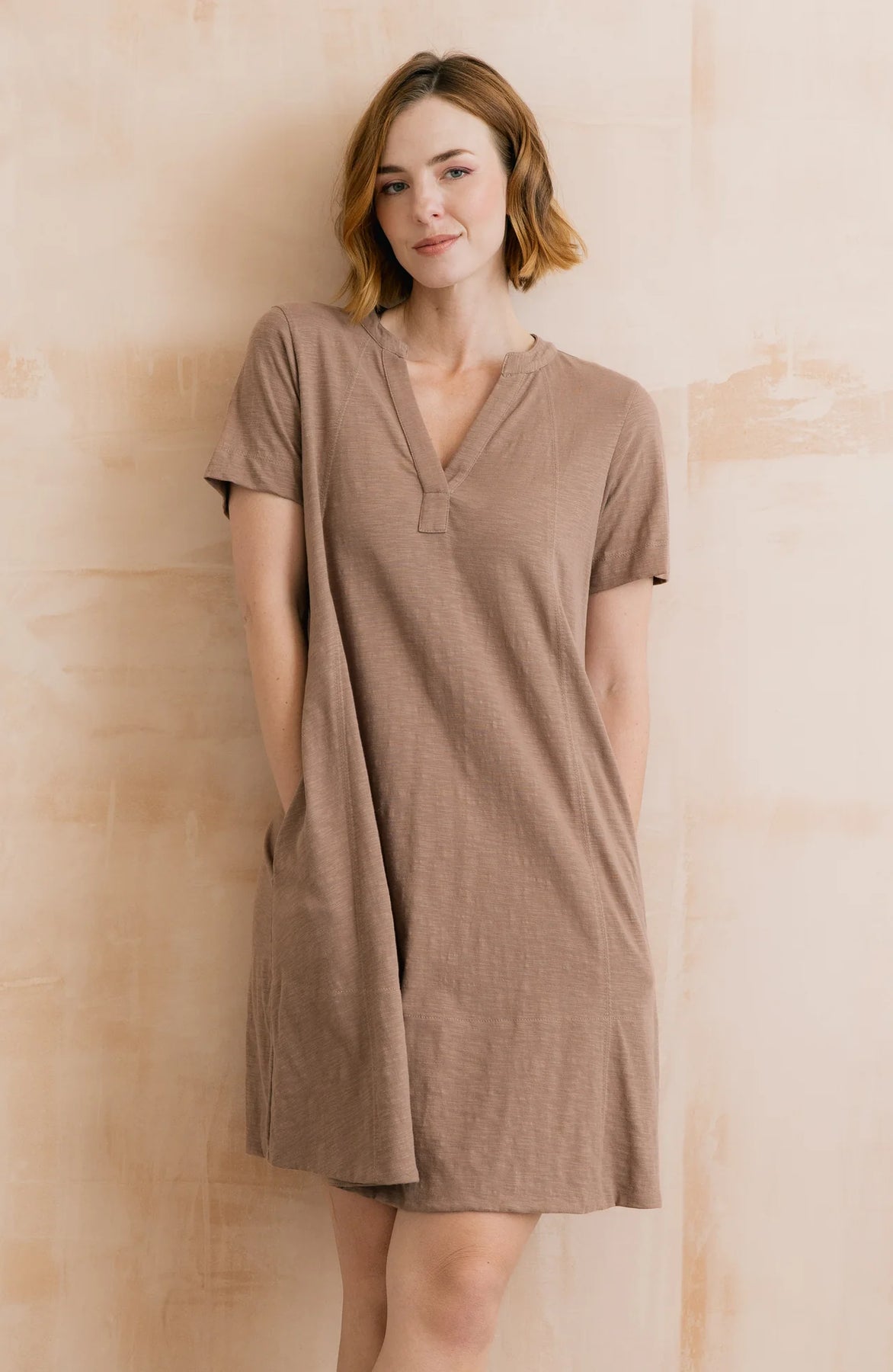 Fabriquée entièrement en jersey de coton biologique certifié, cette pièce se distingue par sa matière respirante et ultra-douce, offrant une sensation de fraîcheur idéale pour les journées ensoleillées. Son design soigné intègre un col mandarin sophistiqué s'ouvrant sur une encolure en V flatteuse, tandis que sa coupe "swing" et ses manches courtes garantissent un confort absolu et une liberté de mouvement totale. Que ce soit pour une escapade estivale avec vos sandales préférées ou pour une sortie décontractée en ville, cette robe durable allie conscience écologique et charme fonctionnel grâce à ses poches latérales indispensables. Chaque exemplaire est conçu pour respecter l'environnement et la santé des travailleurs, faisant de ce vêtement un essentiel sain et stylé pour votre garde-robe de saison.