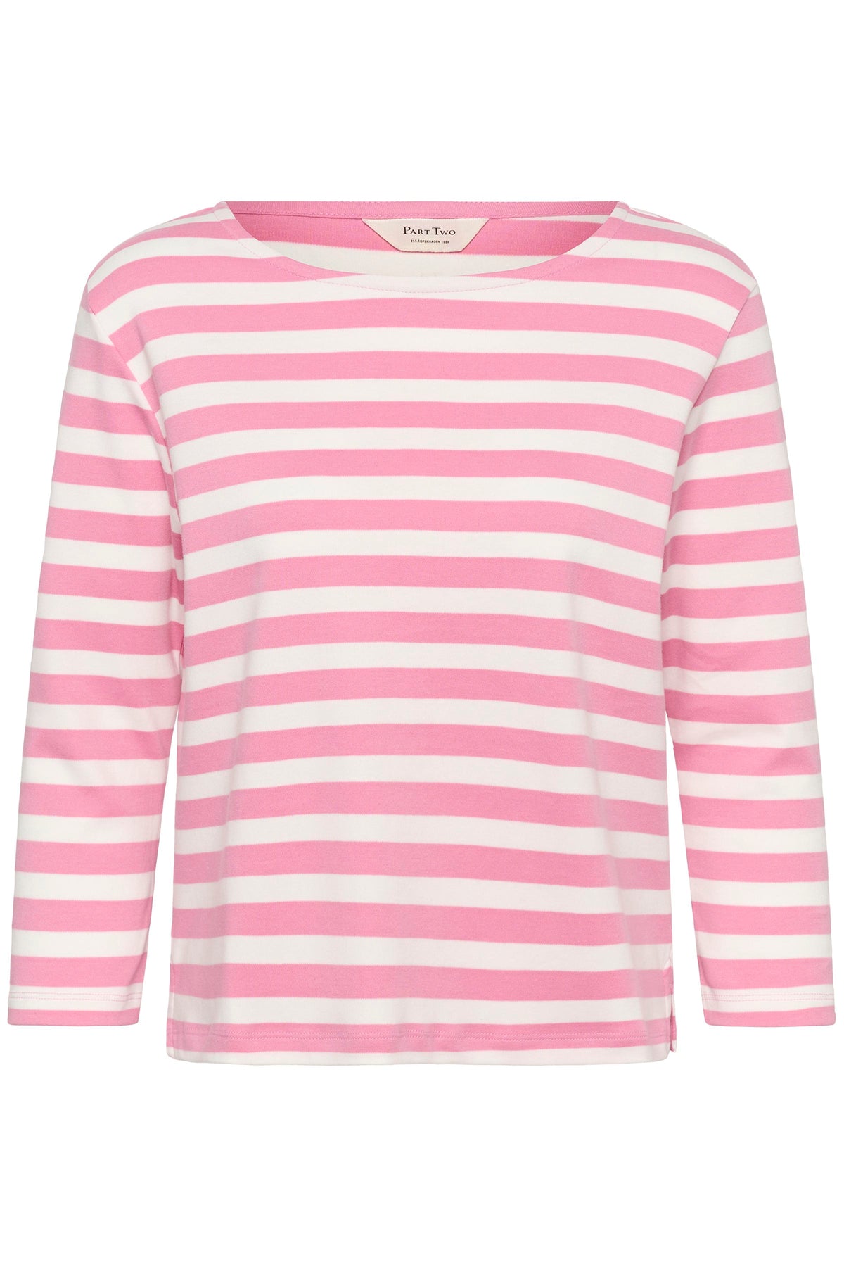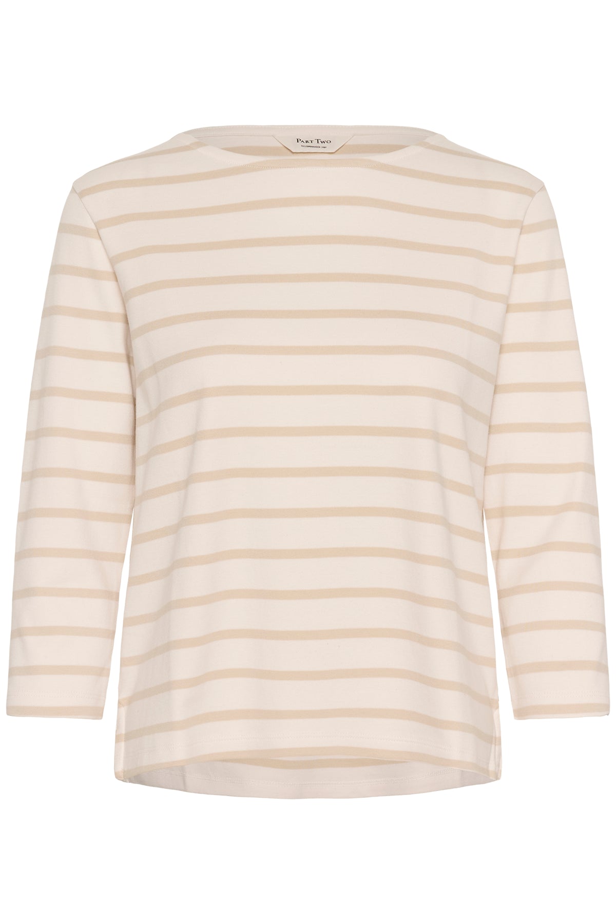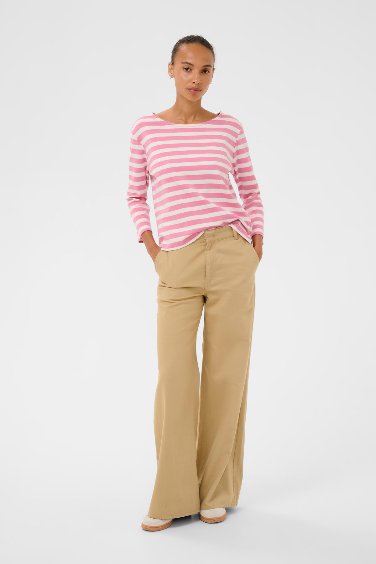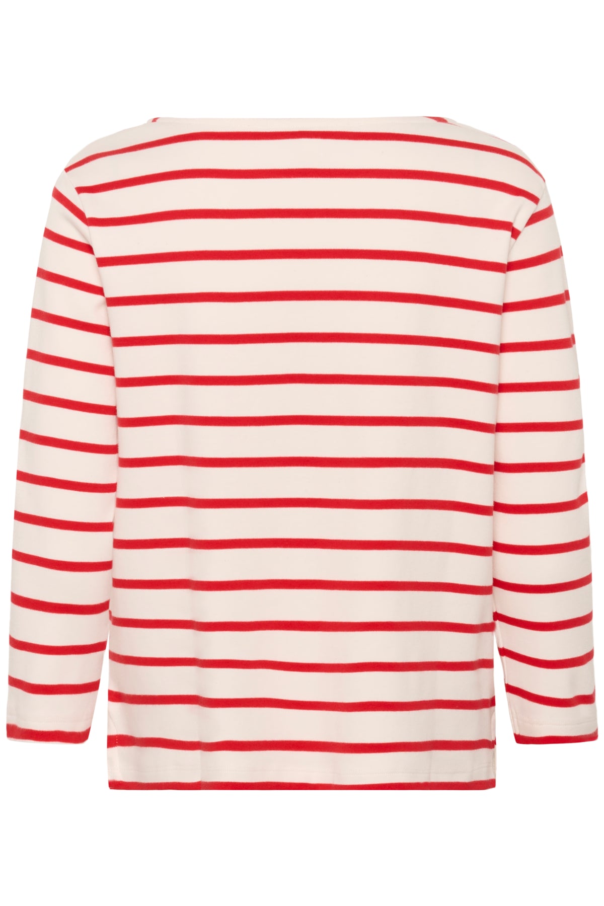Son col bateau, subtilement dégagé, s’inspire des silhouettes classiques. Les rayures, équilibrées et intemporelles, apportent du rythme au tissu. Léger tout en offrant une belle tenue, il accompagne confortablement les mouvements du quotidien. Un essentiel durable, facile à porter saison après saison.