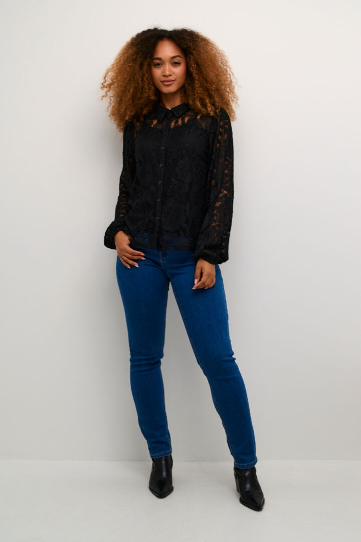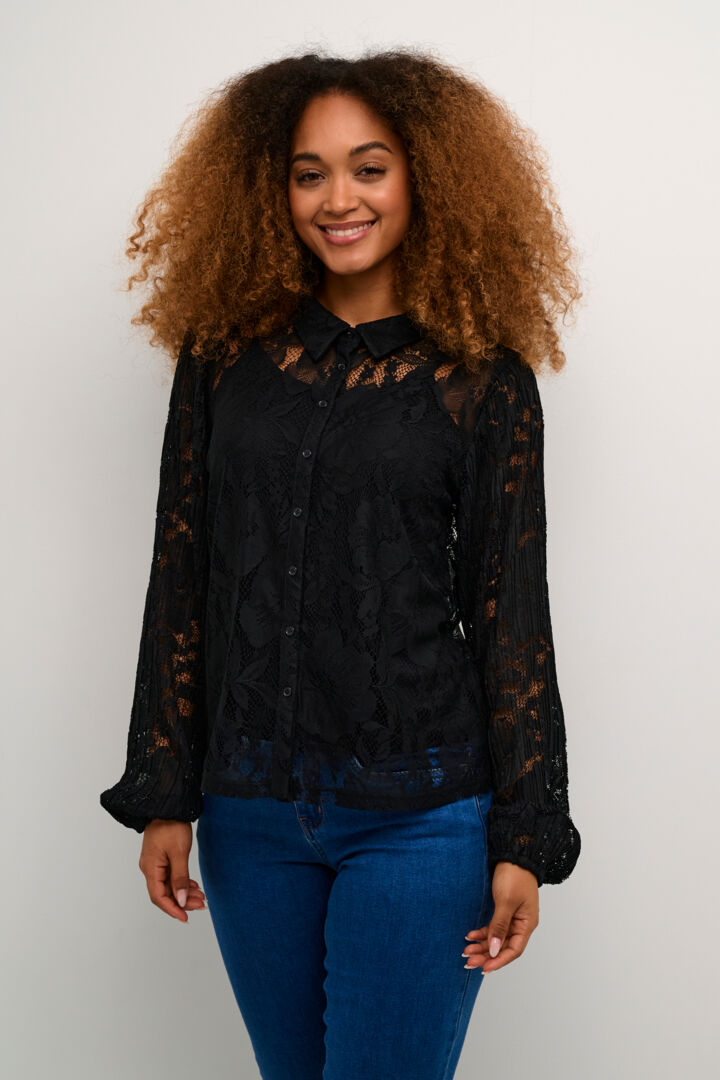 Cette superbe chemise est un véritable bijou de délicatesse et de raffinement. Avec sa dentelle fine et travaillée, elle offre un équilibre parfait entre sophistication et féminité. Chaque motif en dentelle, finement tissé, crée un jeu de transparence subtile, tout en étant parfaitement couvert grâce à la doublure intégrée qui assure confort et opacité là où il faut.