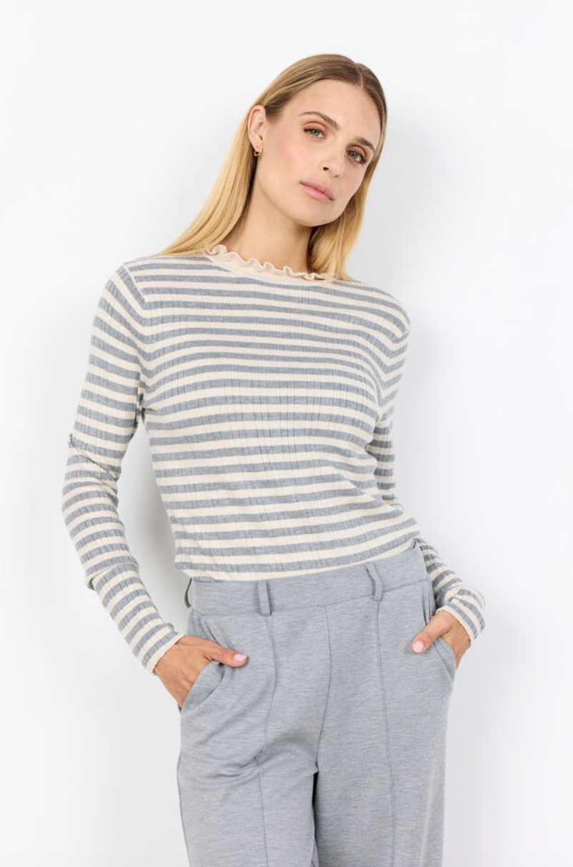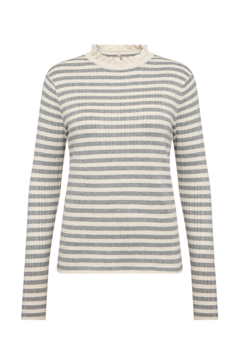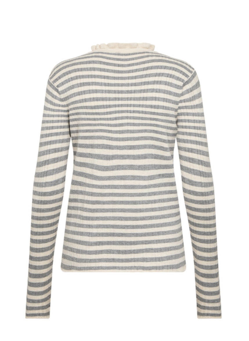 Ce chandail, distille une douceur empreinte de raffinement dans ses moindres détails. Le col, subtilement ondulé tel un motif de dentelle finement tracé, confère à cette pièce sobre une dimension romantique et gracieuse. Confectionné dans une maille souple et agréable au porter, il épouse la silhouette avec légèreté tout en apportant, par cette finition inattendue, une touche distinctive. Porté seul ou sous une veste structurée, il s’impose comme un élément central d’une tenue maîtrisée.