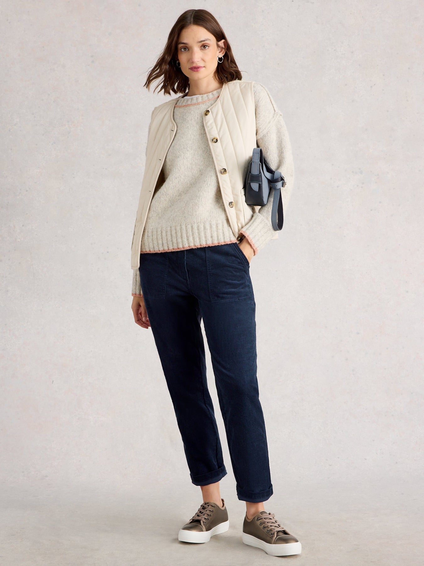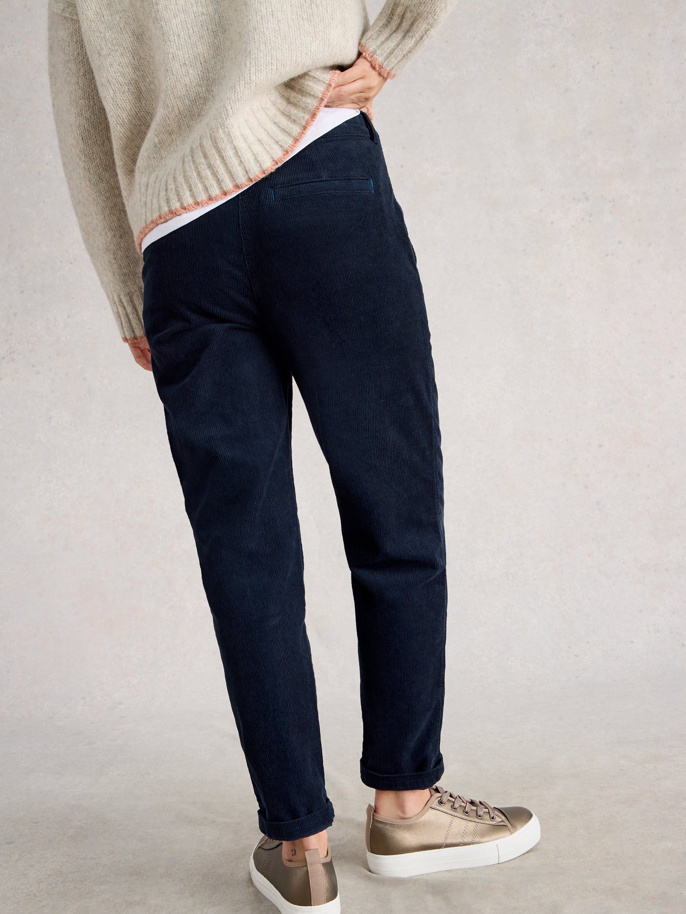 Avec sa coupe décontractée et sa matière en velours côtelé, il revisite le pantalon casual avec une touche chic et texturée. Sa taille haute flatte la silhouette tandis que les poches plaquées à l’avant ajoutent une note utilitaire moderne. Parfait pour l’automne-hiver, il s’associe aussi bien à un pull douillet qu’à une chemise structurée.