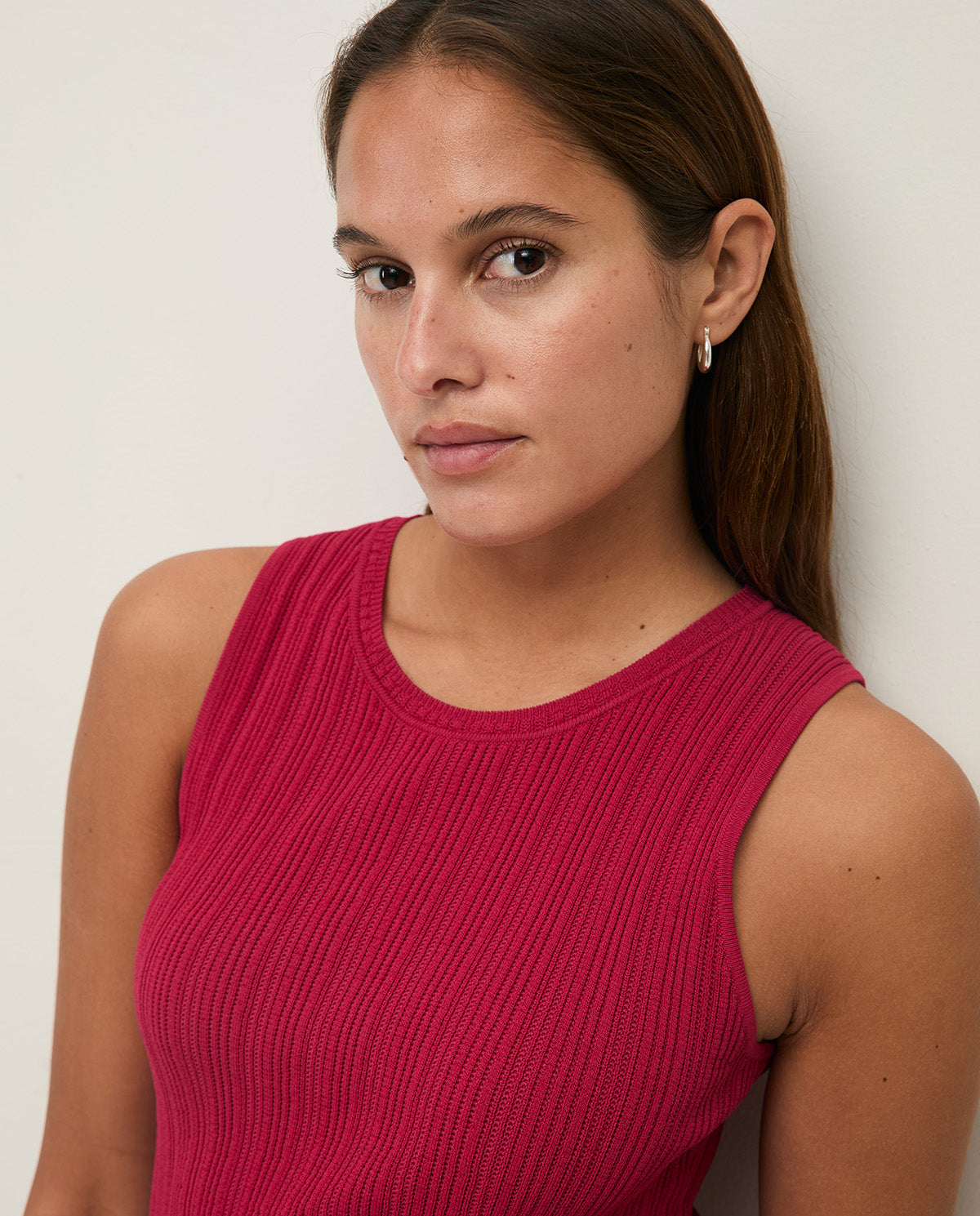 Cette robe midi met en valeur votre silhouette grâce à son design bi-matière élégant et sa teinte framboise profonde. Son corsage ajusté en maille côtelée offre un maintien souple et confortable, tandis que sa jupe évasée crée un mouvement fluide et aérien à chaque pas. Confectionnée dans un mélange de viscose et de polyamide, elle assure une douceur soyeuse sur la peau et une excellente tenue au fil de la journée. Parfaite pour une occasion spéciale ou une sortie urbaine, elle se marie aussi bien avec une pochette chic qu'avec des sandales décontractées pour un look polyvalent et sophistiqué. Une pièce féminine qui combine harmonieusement le confort d'un haut texturé à l'élégance d'un bas vaporeux.