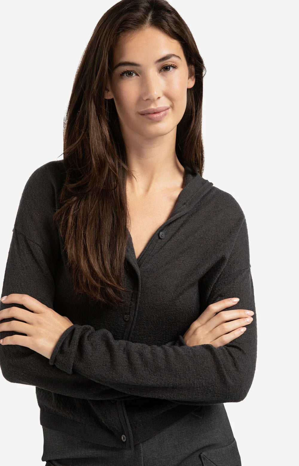 Ce cardigan en maille douce séduit par sa coupe régulière et son col montant, offrant confort et élégance. Sa texture subtile apporte de la profondeur au tissu, tandis que la fermeture boutonnée sur le devant lui confère un charme classique. Les finitions côtelées aux poignets et à la base ajoutent une touche de confort supplémentaire. Parfait à superposer lors des journées plus fraîches.