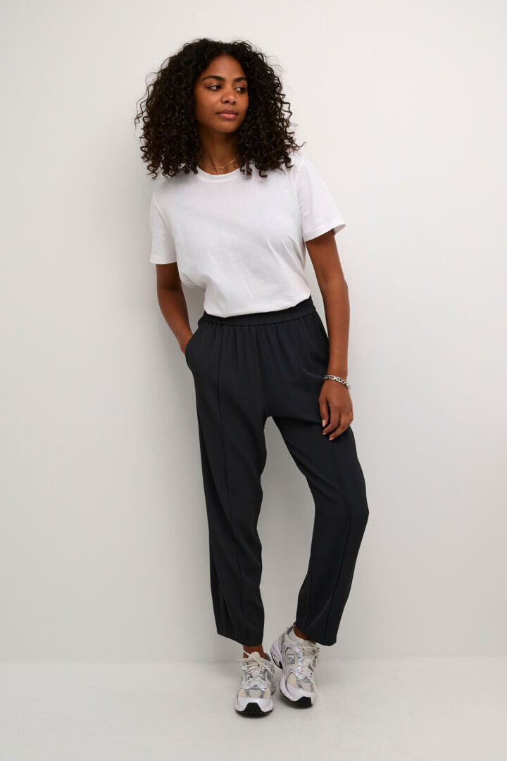 La coupe ample de ce pantalon est conçue pour flatter la silhouette tout en offrant une liberté de mouvement optimale. La coupe droite se termine juste au-dessus des chevilles, permettant de mettre en valeur vos chaussures préférées. Ces détails font une différence majeure sur l'ensemble du look, avec notamment les poches latérales et les coutures verticales le long de la jambe.