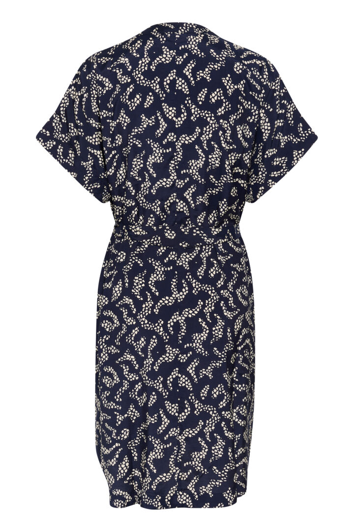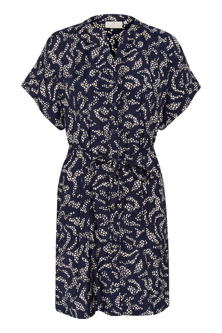 Légère comme une brise d’été, la robe-chemise parcourue de serpentins dansants invite au mouvement, à la spontanéité, à la poésie du quotidien. Sa coupe fluide et décontractée évoque les journées douces où tout semble possible — celles où l’on marche sans but précis, simplement portée par l’élan d’une belle lumière ou par le bruissement d’un arbre en fleur.
