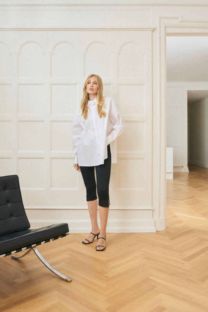 Il est parfois un seul détail qui suffit à émouvoir — ici, c’est une rose. Discrètement lovée au creux du col, telle une confidence murmurée à fleur de peau, elle métamorphose cette chemise en un véritable poème à porter. Façonnée en relief avec une délicatesse exquise, la rose ne se contente pas d’orner : elle affirme, elle révèle. Manifestation d’un romantisme pleinement assumé, elle incarne cette alliance rare entre subtilité et audace, et confère à la pièce une aura à la fois tendre et résolument singulière.