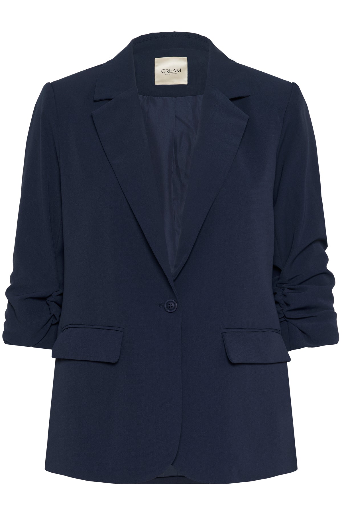 Veston au style moderne avec coupe décontractée, manches trois-quarts froncées et col à revers classique. Conçu pour offrir confort et polyvalence, il se porte aussi bien au travail que dans des tenues plus décontractées. Une pièce essentielle pour une allure soignée au quotidien.