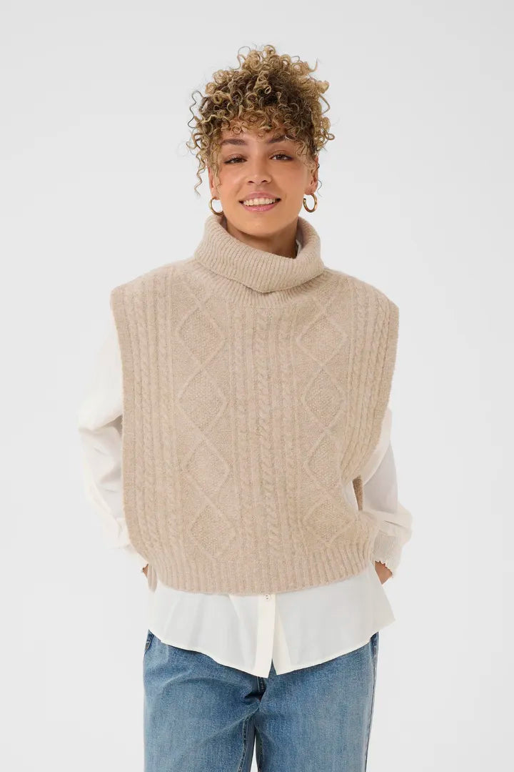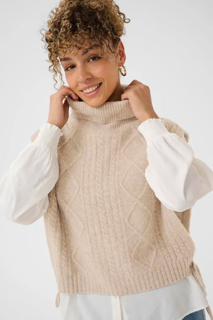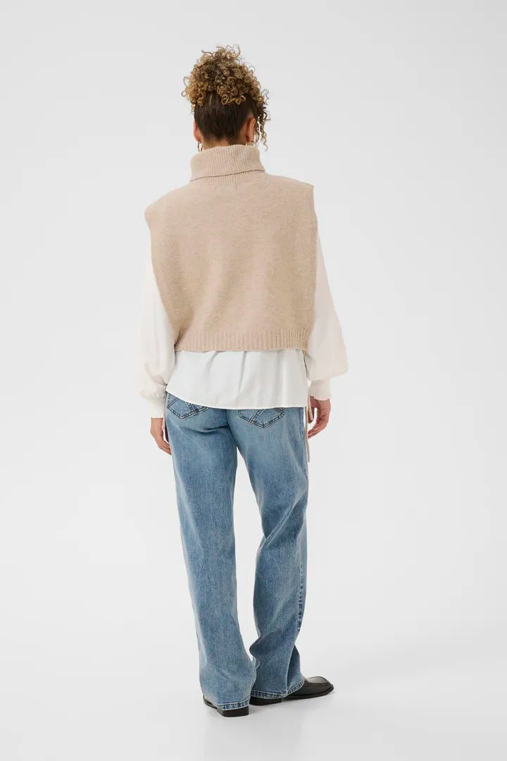 Ce débardeur réinvente la silhouette avec ses ouvertures latérales, ponctuées de boucles qui captent le regard. Les côtés restent ouverts, laissant place au mouvement du corps et créant un jeu subtil entre structure et fluidité. Le fait qu'il soit ouvert sur le côté le rend idéal pour enfiler sous un manteau.