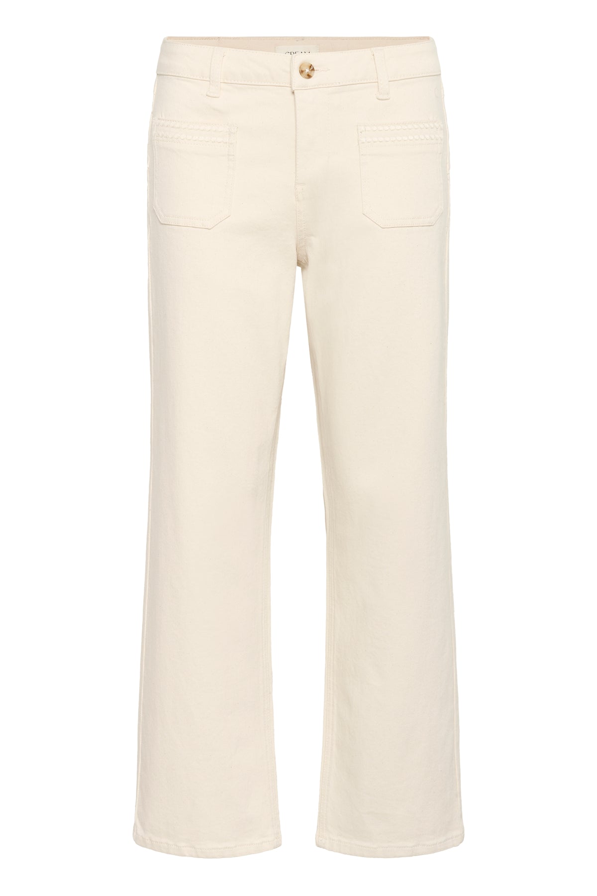 Un jean polyvalent qui offre une coupe droite confortable et un maintien agréable grâce à son léger stretch. Sa taille mi-haute et sa teinte blanc cassé en font une pièce facile à porter au quotidien, autant avec un look décontracté qu’un ensemble plus soigné.