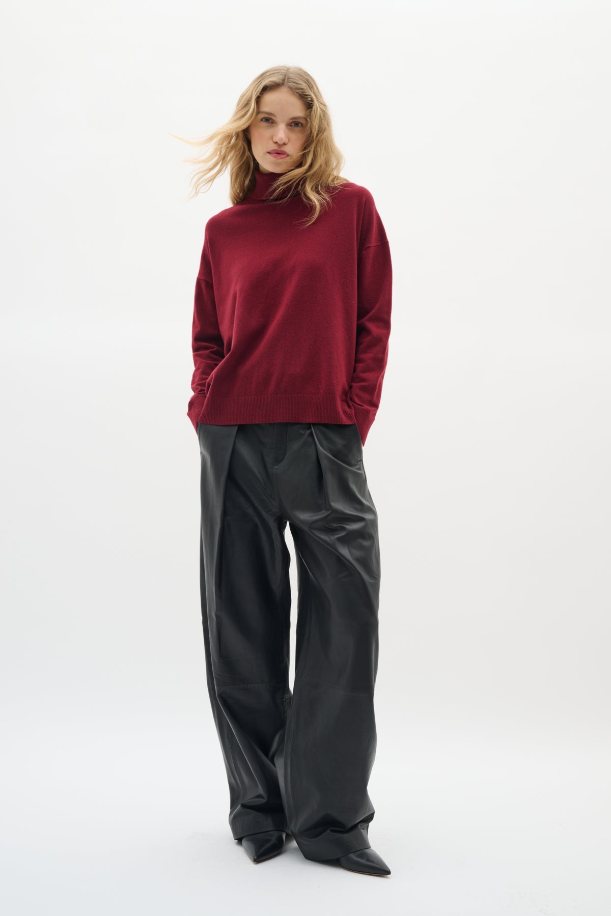 Ce pull bordeaux mêle allure classique et détail inattendu. Son col roulé enveloppe avec douceur, tandis qu'une fente subtile au dos apporte une touche d'élégance moderne et d'originalité. Sa coupe fluide et son tombé soigné en font une pièce forte, facile à porter, qui se distingue sans effort. Parfait pour celles qui aiment les essentiels revisités avec caractère.