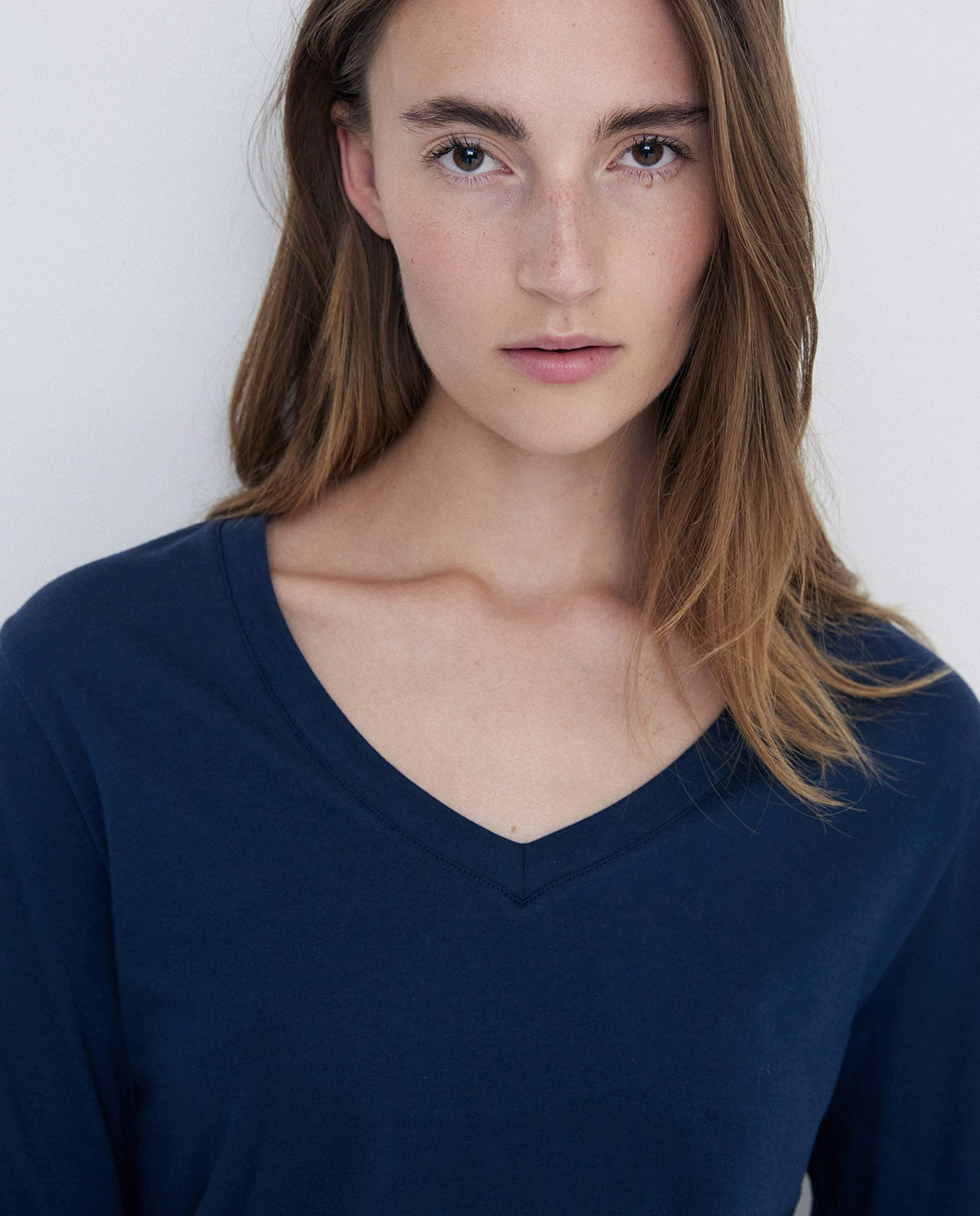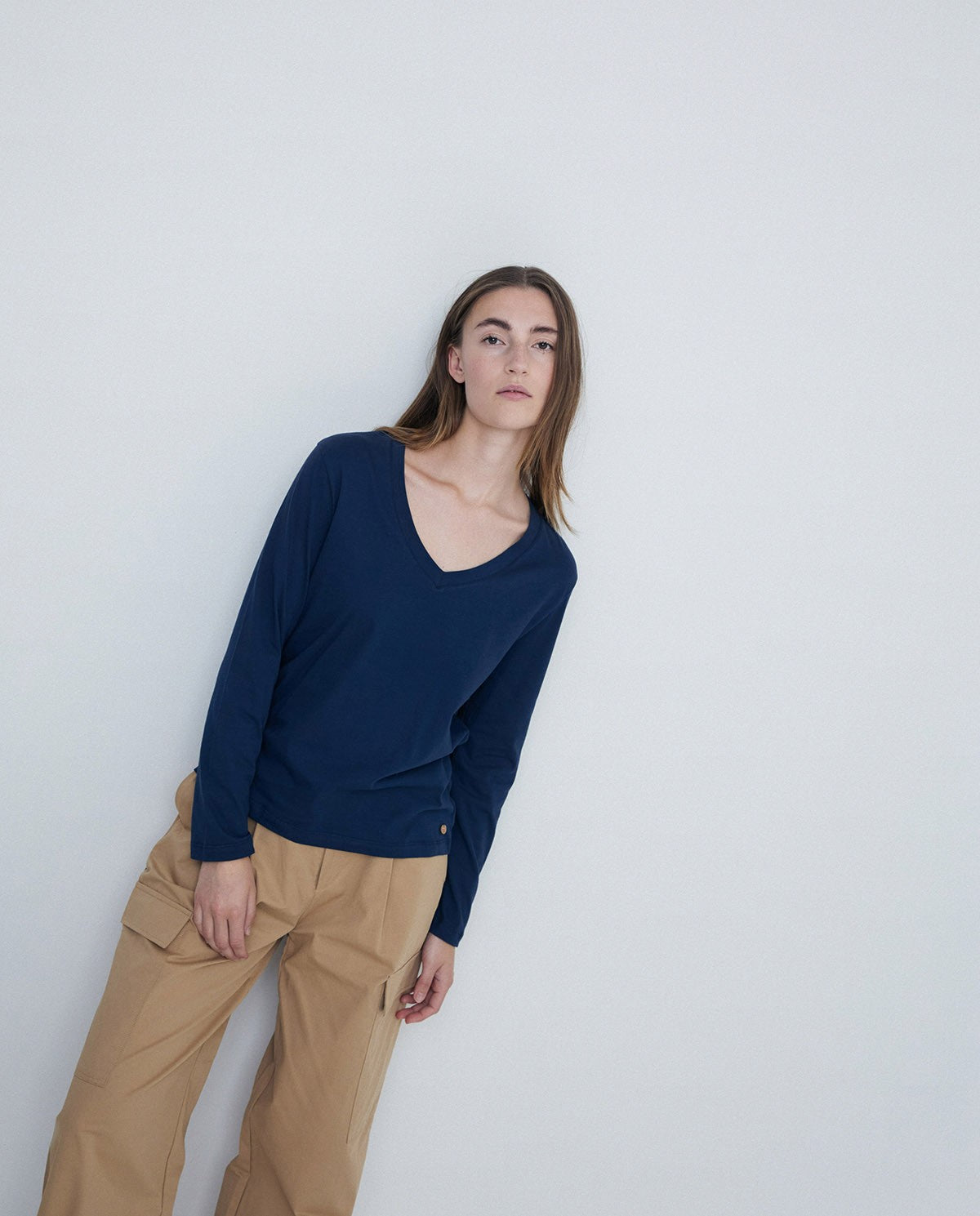 Ce chandail à manches longues est l'essentiel de votre garde-robe. À porter seul pour un look décontracté ou sous un autre vêtement pour plus de chaleur. Son tissu doux et respirant garantit un confort optimal, tandis que sa coupe ajustée épouse vos formes sans restreindre vos mouvements. Facile à entretenir et parfait pour toutes les occasions, il s'adapte à votre quotidien avec élégance et simplicité.