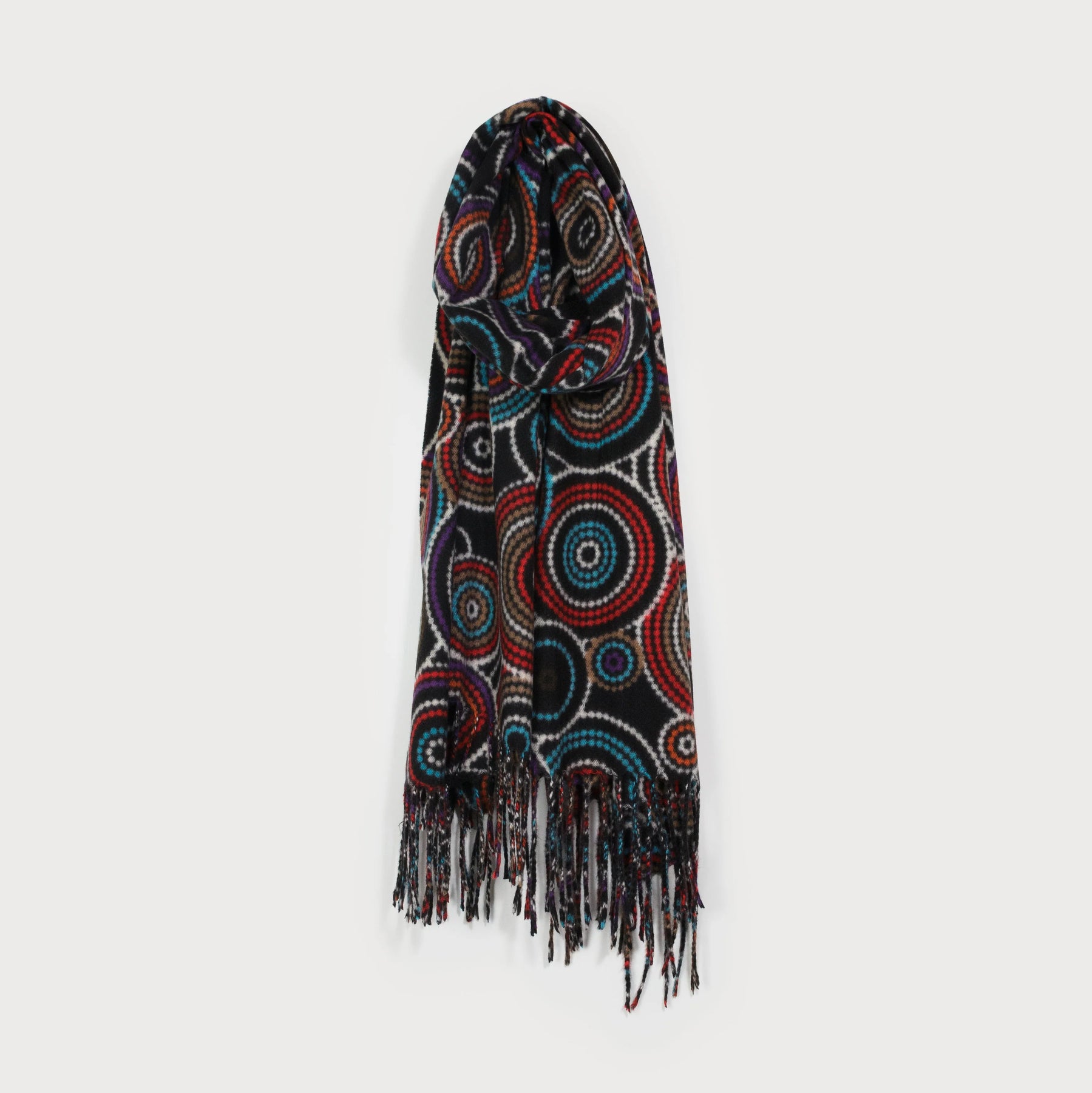 Ce foulard allie douceur et chaleur grâce à son tissu confortable, tout en apportant une touche moderne avec son motif géométrique. Polyvalent, il se porte autour du cou ou sur les épaules pour compléter vos tenues, qu’elles soient décontractées ou plus habillées.