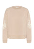 Confortable et stylé, ce sweatshirt à la coupe décontractée se distingue par son encolure ronde classique et ses épaules tombantes. Les broderies délicates sur les manches apportent une touche d’originalité à ce basique intemporel. Facile à associer, il se porte aussi bien avec un jeans casual qu’avec une jupe pour un look plus chic.