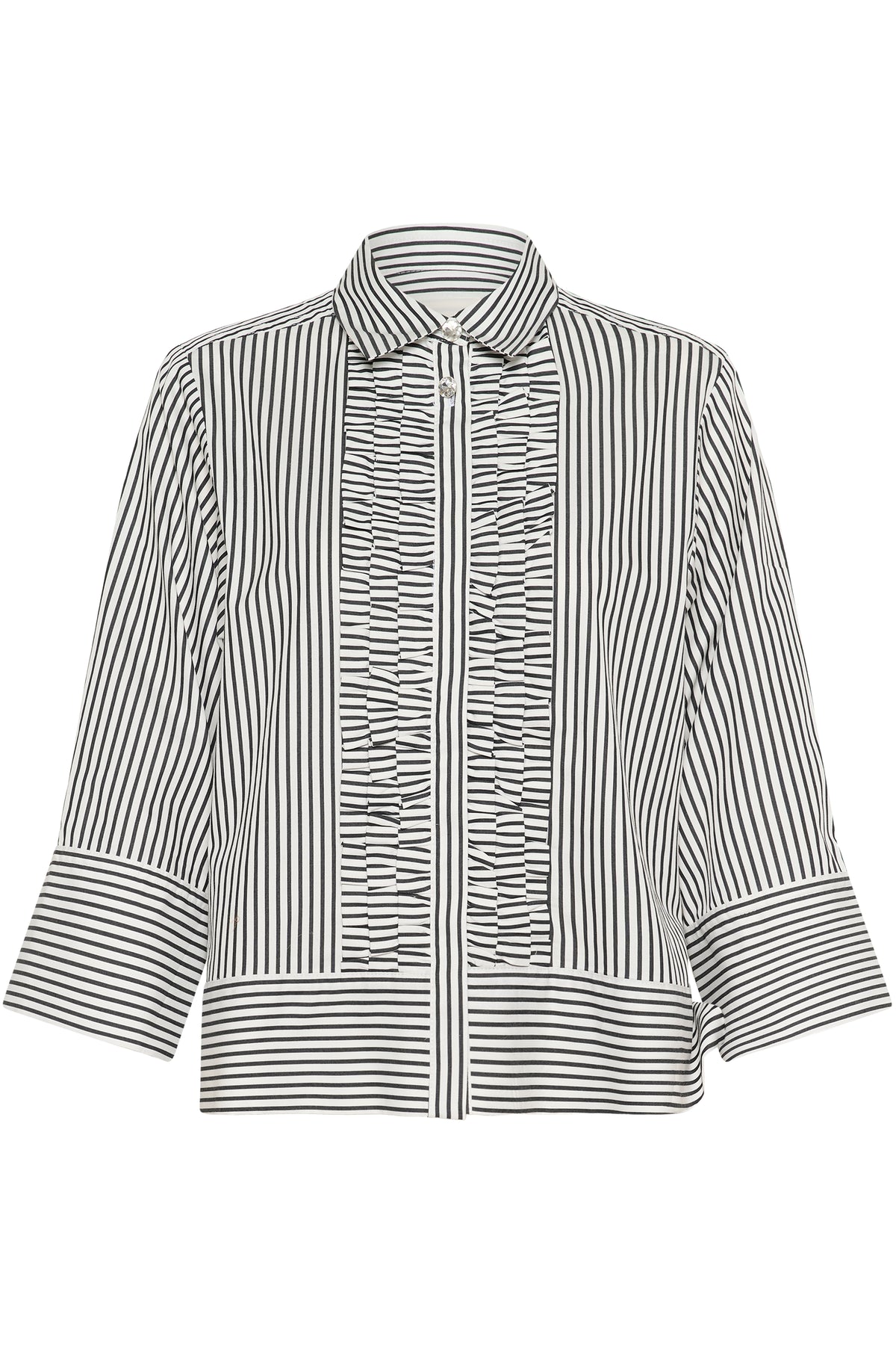 Cette chemise à manches longues séduit par son allure classique et son confort naturel. Confectionnée en coton biologique, elle allie douceur et respirabilité, idéale pour être portée toute la journée. Son motif à rayures noires apporte une touche moderne et raffinée, parfaite pour les tenues décontractées comme plus habillées.
