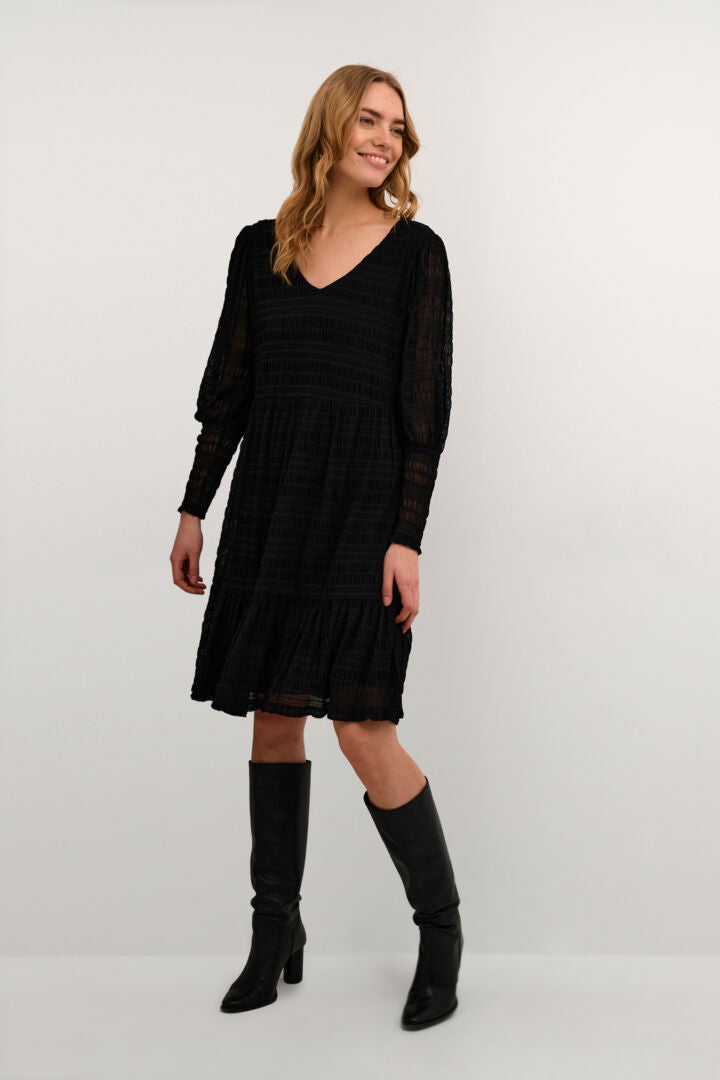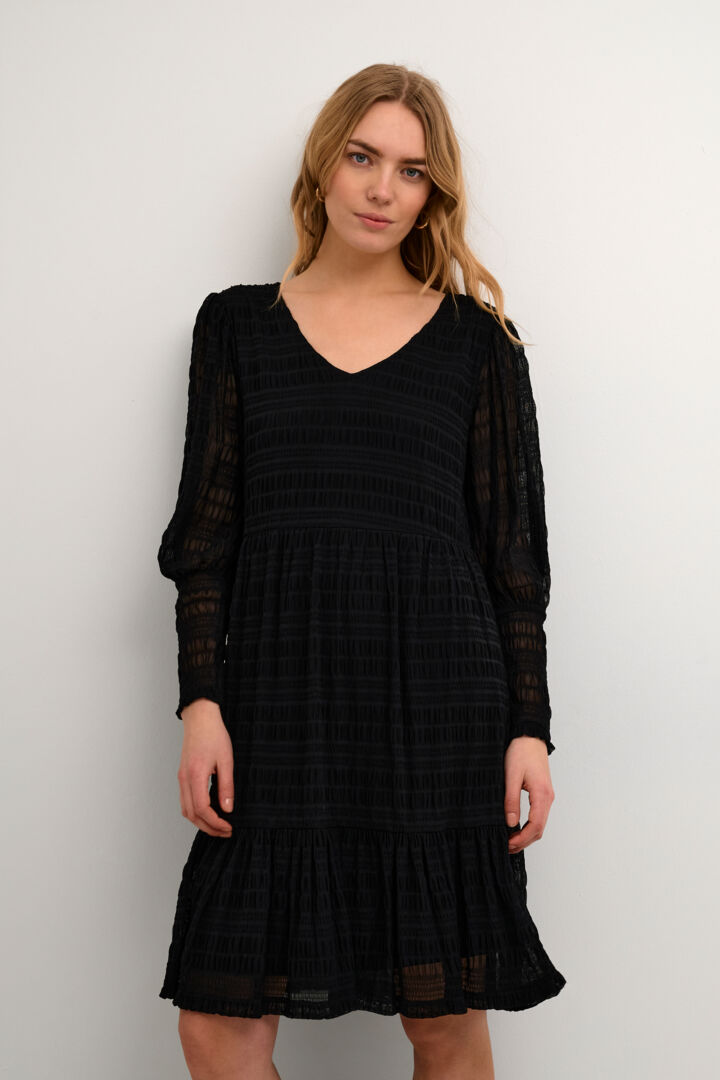 Le tricot doux et extensible de cette robe offre un confort exceptionnel tout en ajoutant une touche de chaleur. Le col en V flatteur met en valeur votre cou et ajoute une dimension de style. L'un des éléments distinctifs de cette robe est la transparence subtile des manches. Les manches en tissu léger et transparent ajoutent une touche d'originalité à la robe, créant un contraste élégant avec le tricot doux du corps.
