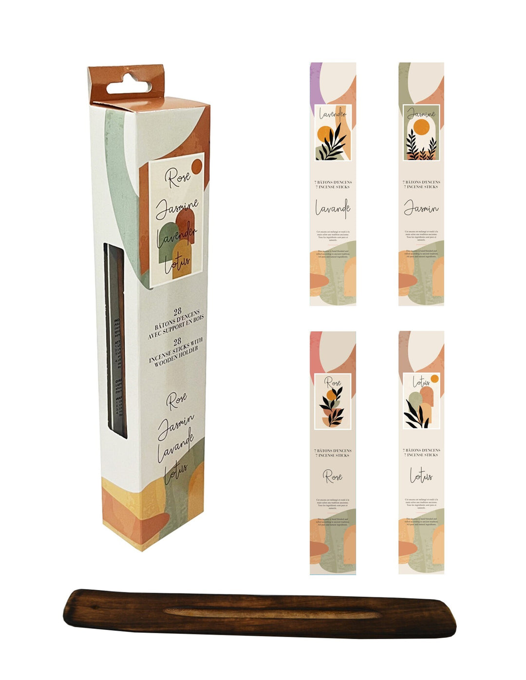 Une invitation au calme, sculptée dans la simplicité. Ces bâtons d’encens, fins et élégants, diffusent leurs volutes parfumées avec lenteur, emplissant l’espace d’une douceur presque sacrée. À leur base, un support en bois — brut, chaleureux, façonné avec soin — accueille chaque bâton comme un geste d’intention. Il ancre le rituel dans la matière, équilibre la légèreté de la fumée par la solidité du bois. Ensemble, ils transforment n’importe quel coin de pièce en refuge sensoriel. Allumez, respirez, laissez le monde ralentir.