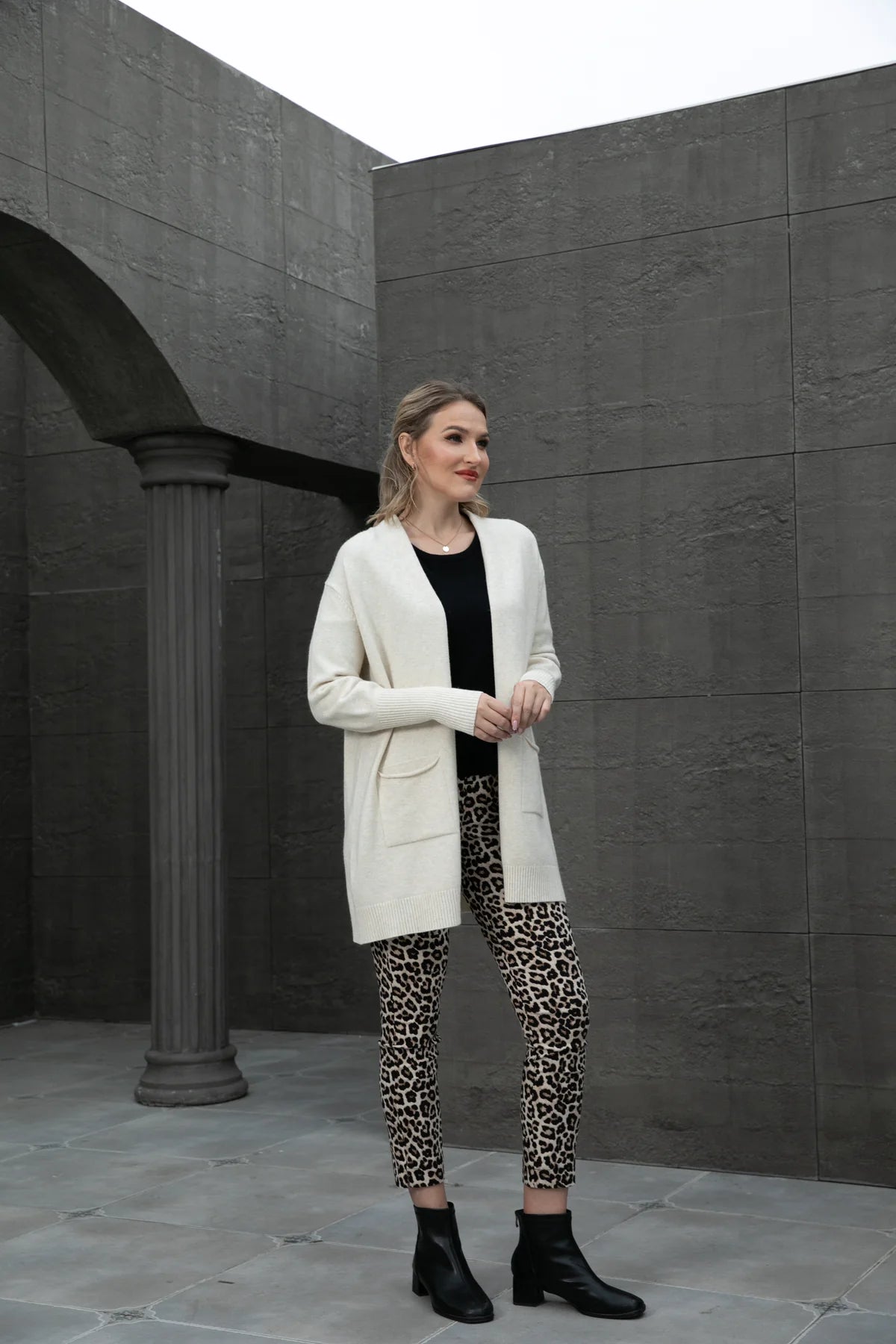 Doté de manches bishop modestes et de poignets côtelés, ce cardigan apporte une touche de sophistication tout en garantissant un ajustement confortable. L'ourlet côtelé ajoute de la structure et une finition soignée à la silhouette. Équipé de deux poches plaquées à l'avant, ce cardigan est aussi pratique que beau, offrant un espace de rangement pratique pour les petits essentiels tout en ajoutant une touche décontractée et fonctionnelle au design.