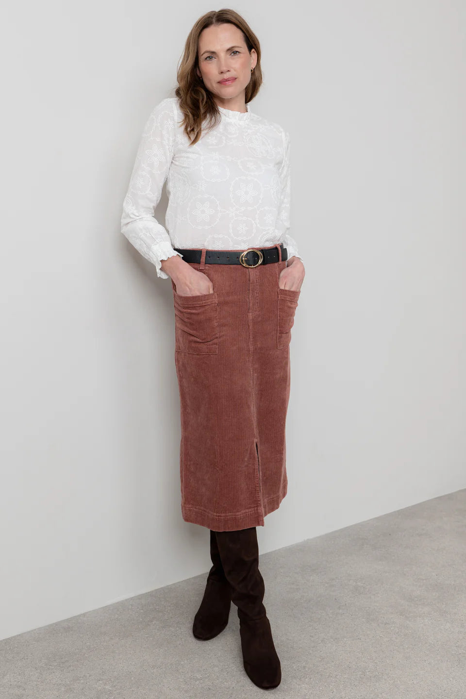 Jupe midi en velours côtelé Penrose