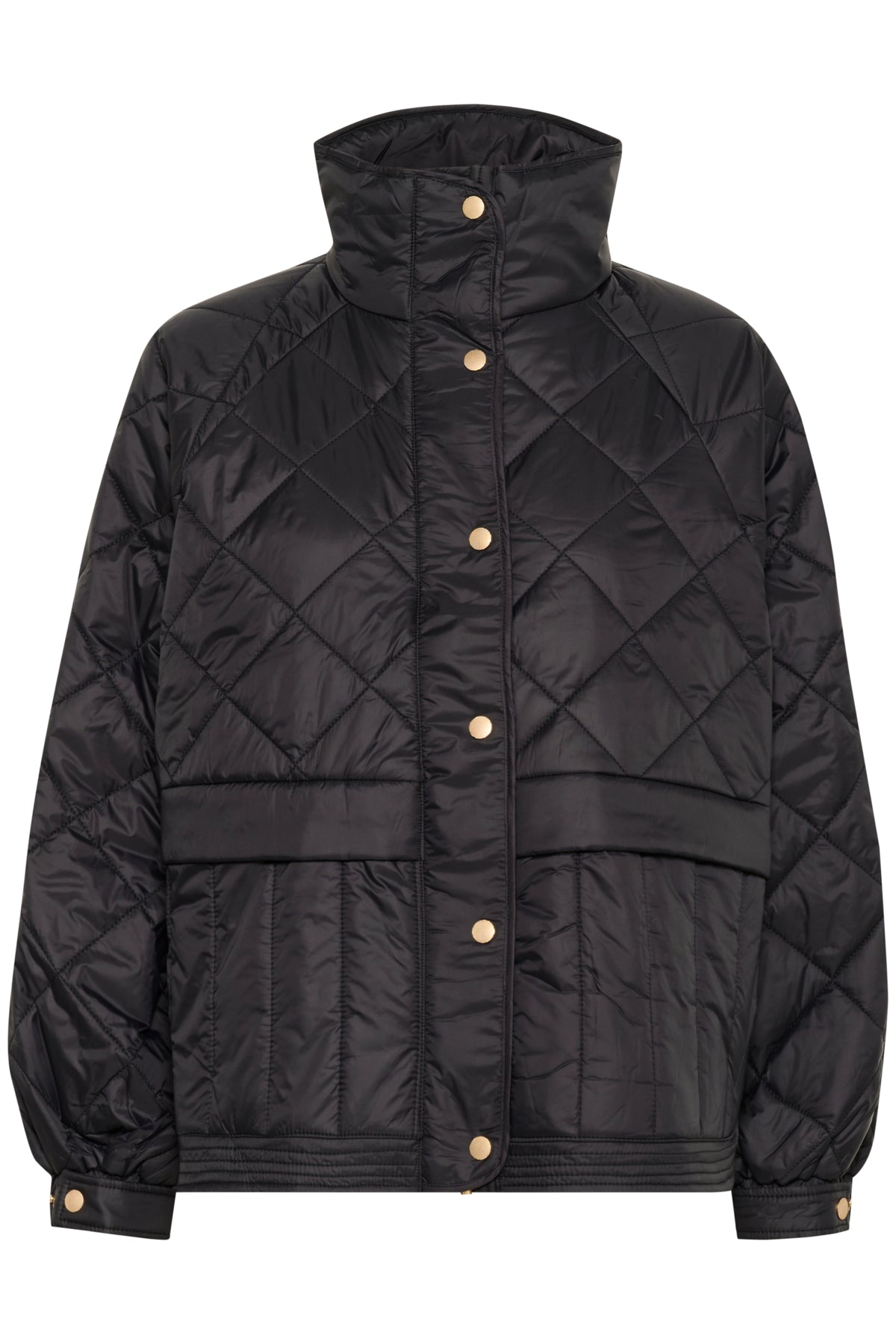 Chaleureuse et stylée, cette veste matelassée noire revisite le style utilitaire avec une touche urbaine. Sa coupe légèrement oversize et son col montant apportent confort et protection contre le froid, tandis que les surpiqûres en losanges ajoutent du relief à sa silhouette. Les boutons pression dorés contrastent subtilement avec le tissu noir pour une finition moderne et élégante. À superposer sur un pull en maille ou un sweat pour un look casual chic par temps frais.