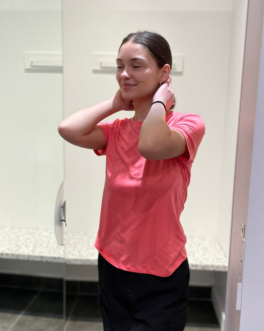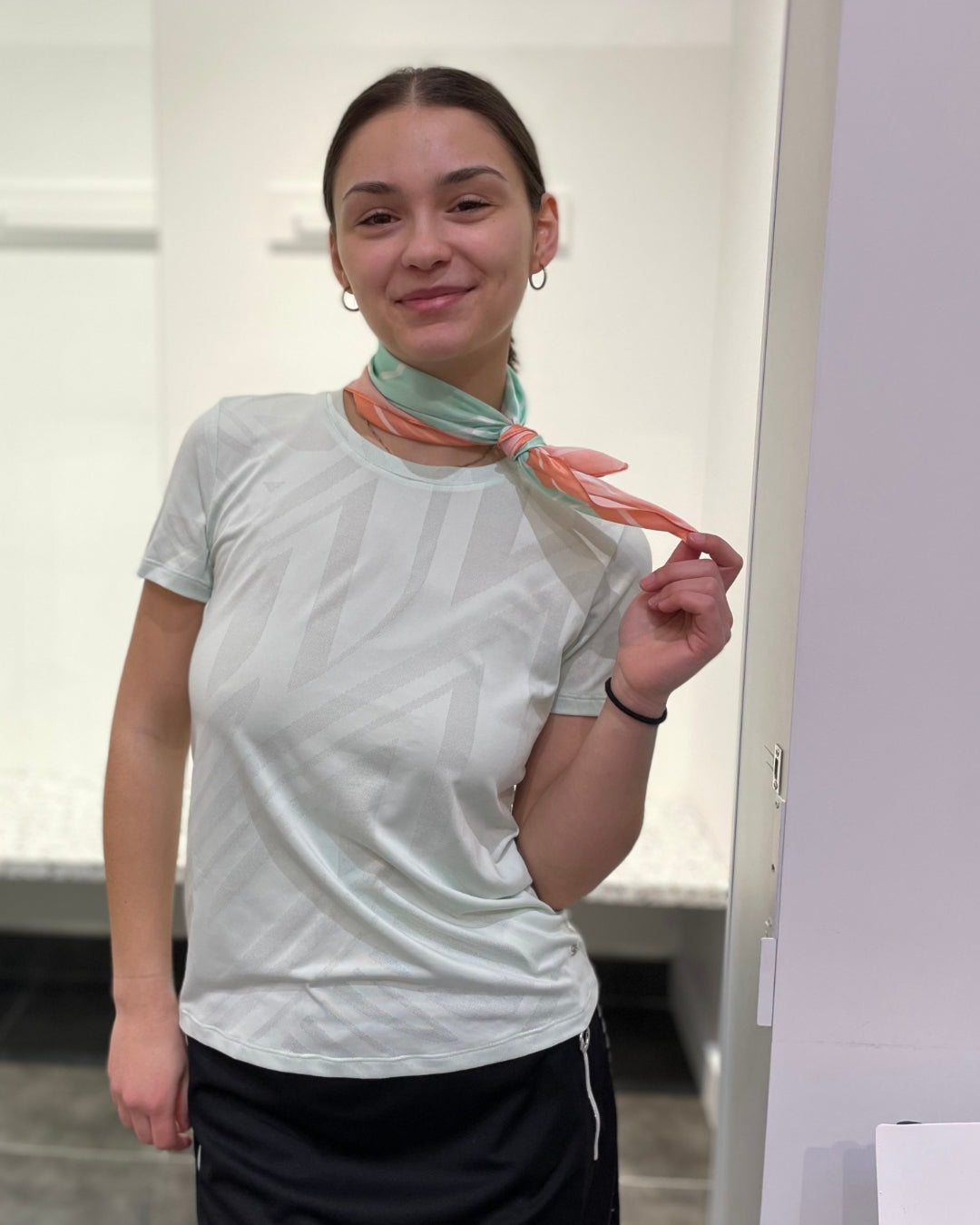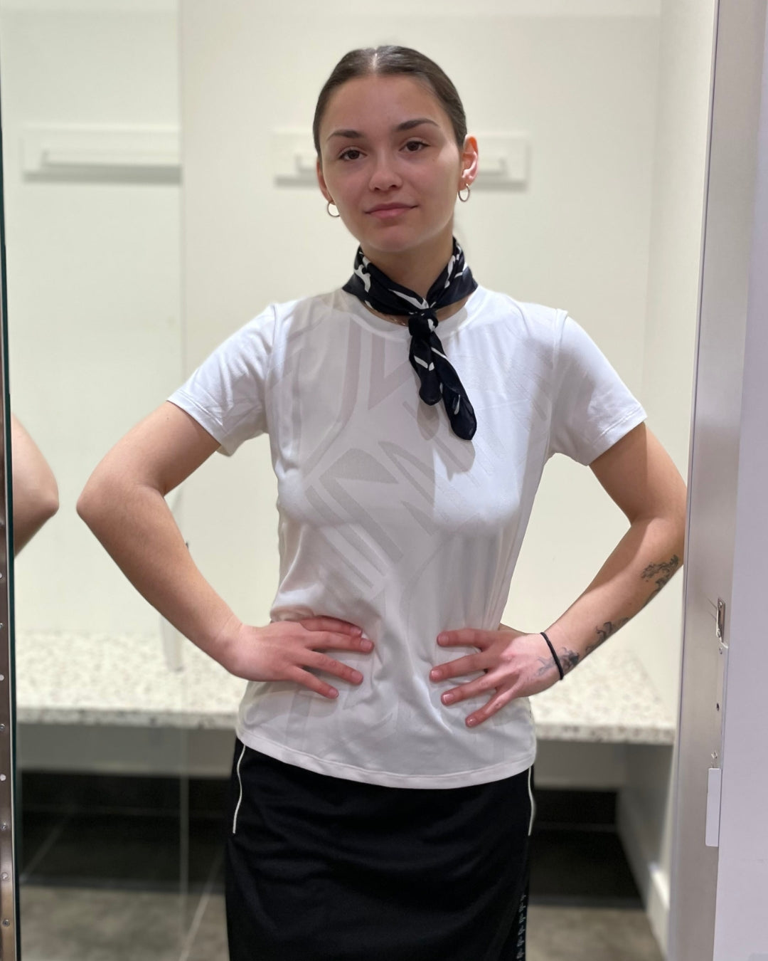 Ce t-shirt à manches courtes capture l’essence d’une allure décontractée, teintée de douceur et de confiance. Sa matière légère effleure la peau avec délicatesse, procurant un confort respirant, parfait pour ces journées où la chaleur s'invite. Les manches dégagent une grâce discrète et laissent deviner les mouvements avec une fluidité naturelle.