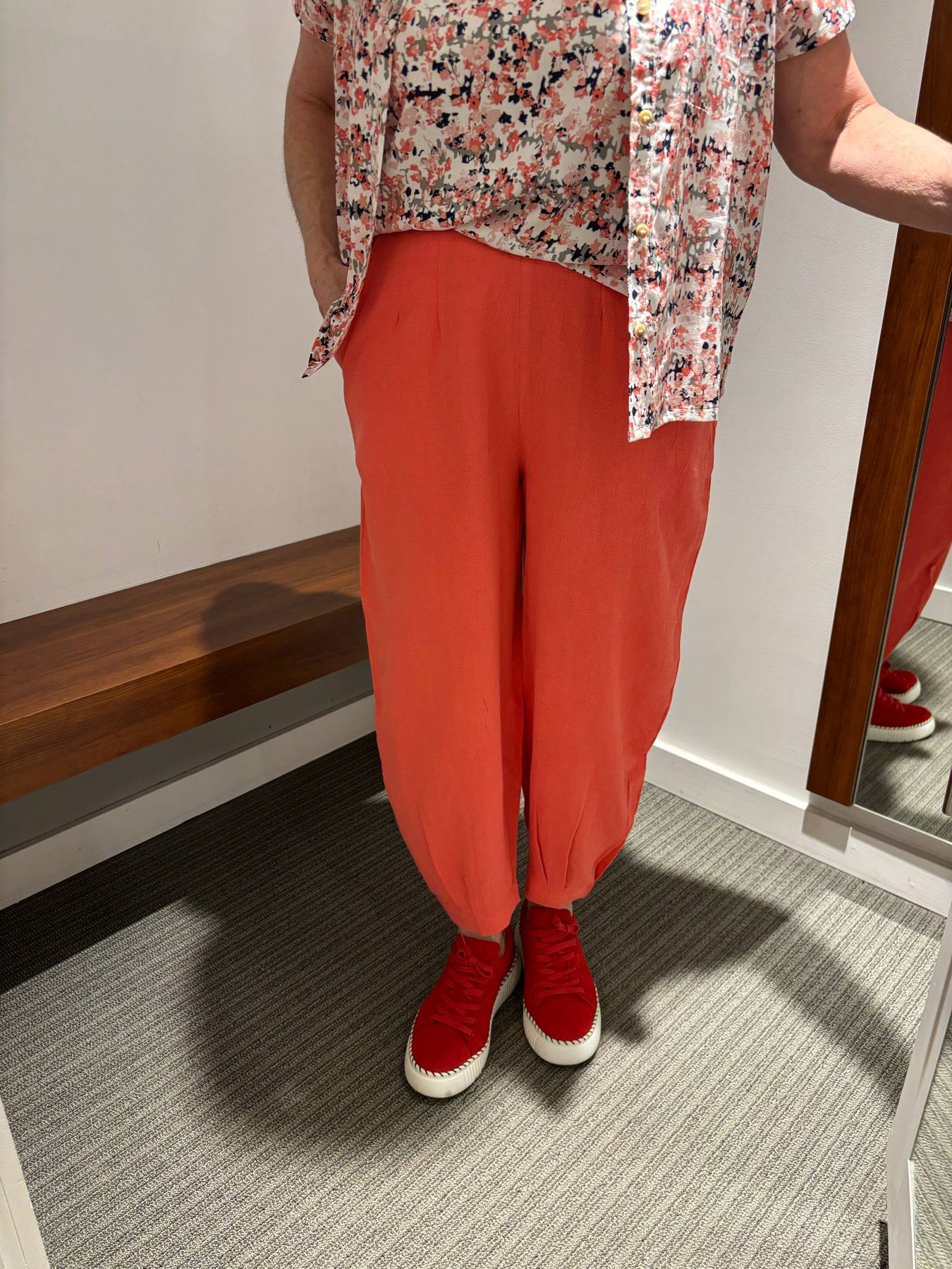 Pantalon ample corail, en lin