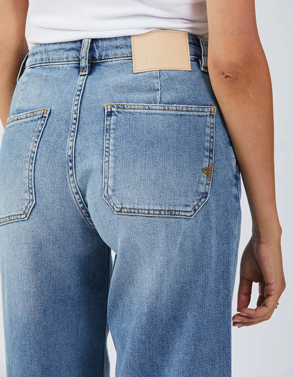 - Pour entretenir votre jean, nous vous recommandons de le laver en machine à l'envers à 30° max. Inutile d'utiliser un fort essorage qui risquerait de détériorer sa couleur. 300 tours/minute est idéal pour en prendre soin. Faites le sécher à l'envers à l'air libre ou à plat. Le sèche-linge est fortement déconseillé, tant pour ne pas abîmer sa toile ou sa couleur, que pour préserver la planète ! Enfin, pour le repassage, toujours à l'envers, le mode coton est le plus adapté. Préférez le steamer au fer à repasser, il a pour avantage de ne pas fragiliser la fibre.