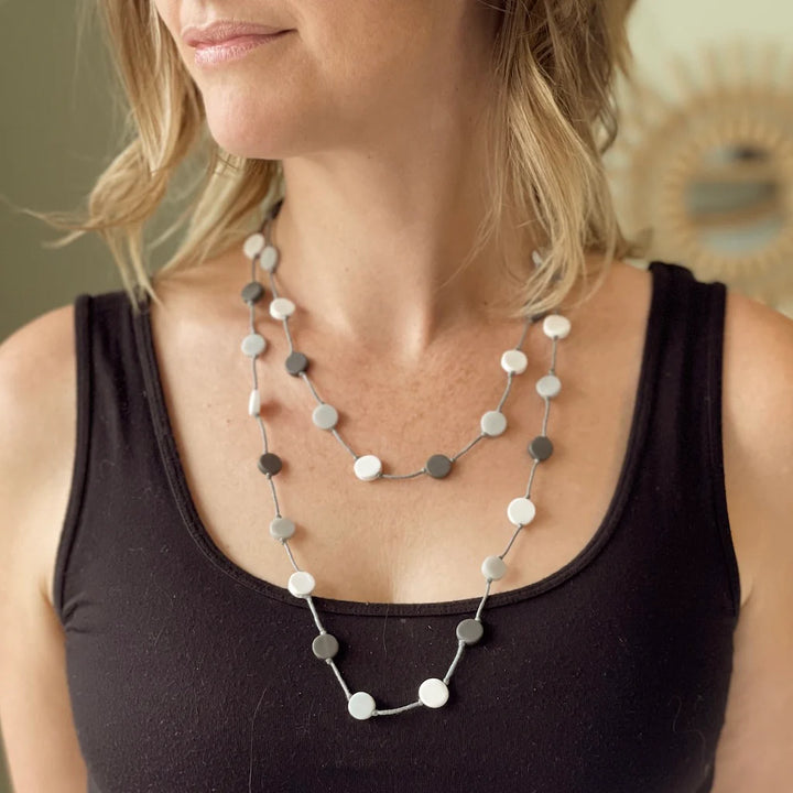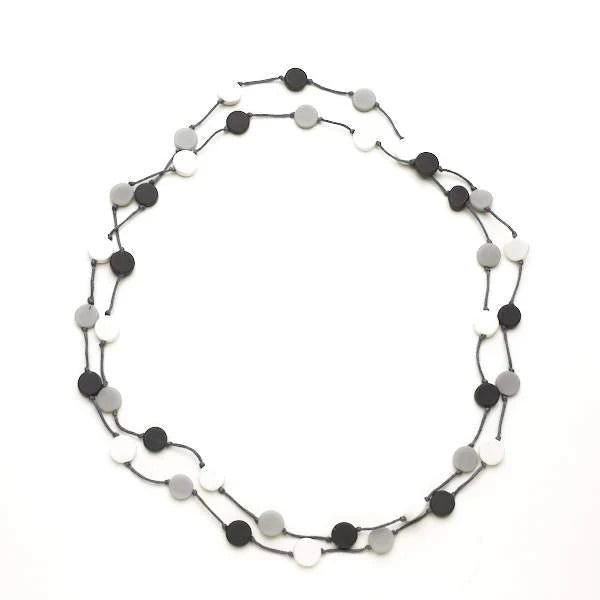 Collier long avec petits disques gris