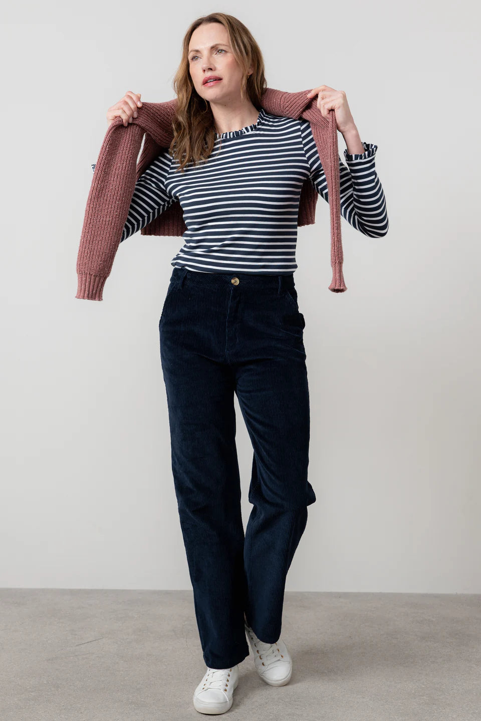 Les rayures, un classique intemporel – et le top Marnie à col volanté en est la parfaite illustration. Ce haut à col montant revisite la silhouette classique avec une touche de féminité coquette. On craque pour les jolis volants au col et aux poignets, qui lui donnent un charme subtil. À porter seul pour un look affirmé, ou superposé sous une robe, un pull ou un débardeur pour un style plus casual.