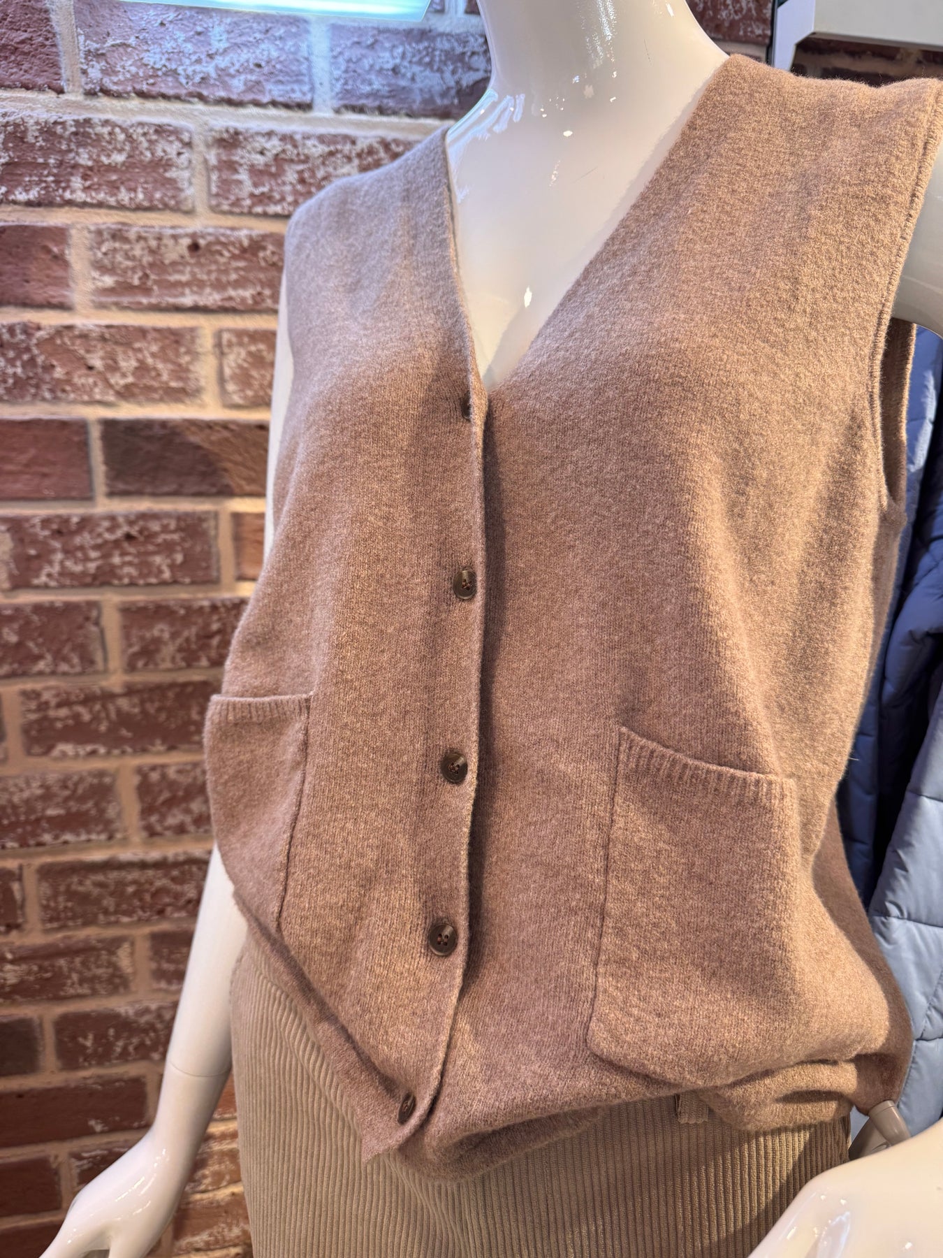 Ce gilet sans manches allie chaleur, confort et élégance décontractée. Confectionné dans un doux mélange de coton et laine, il présente une coupe droite et un col en V flatteur. Sa fermeture boutonnée à l’avant et ses deux poches plaquées en font une pièce aussi pratique que stylée. Idéal à superposer sur un t-shirt, une chemise ou un sous-pull, il s’adapte facilement à toutes les saisons.