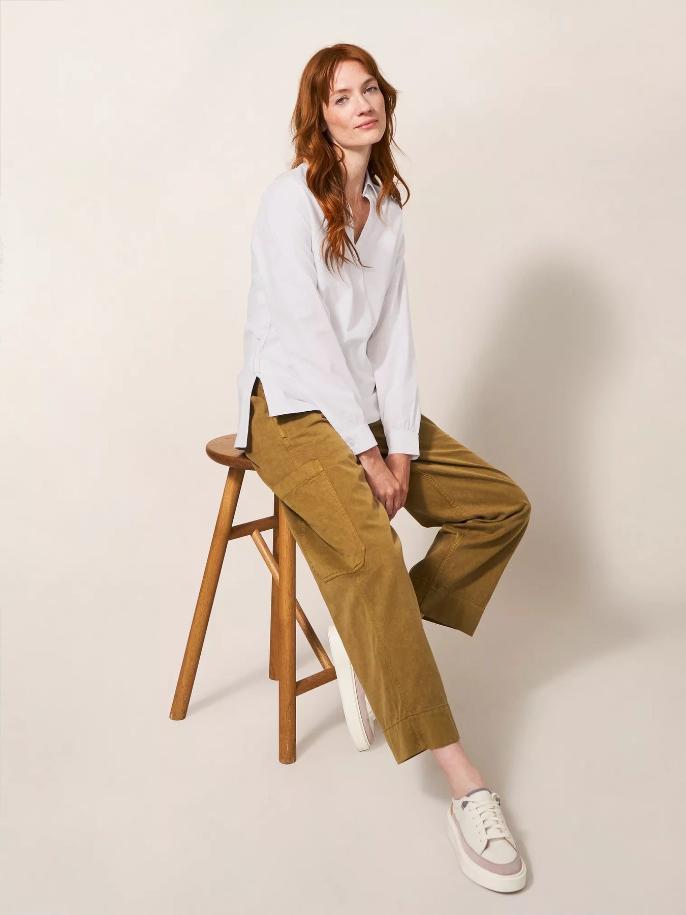 Découvrez notre blouse courte au design moderne, dotée d'une coupe flatteuse avec un col en V élégant qui mettra en valeur votre féminité. Les fentes pratiques sur les côtés ajoutent une touche d'aisance et de style, tandis que la longueur raccourcie ajoute une dose de tendance à votre tenue. Cette blouse est parfaite pour créer un look décontracté et chic en toute occasion, que ce soit avec un jean, une jupe ou un pantalon.